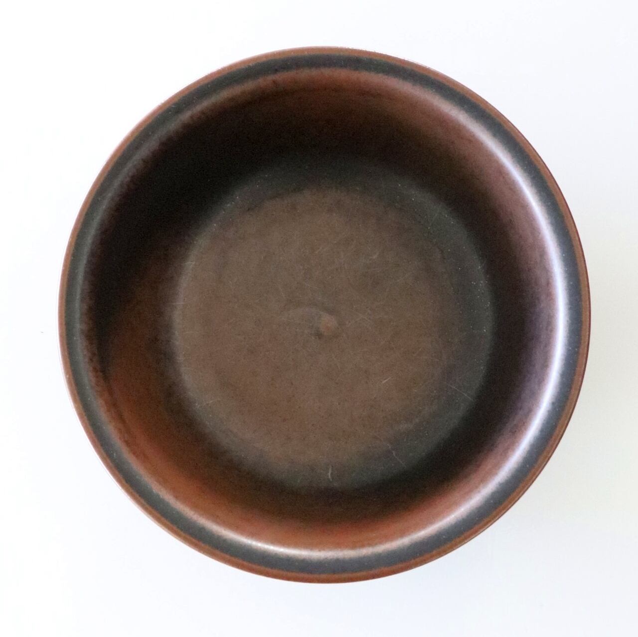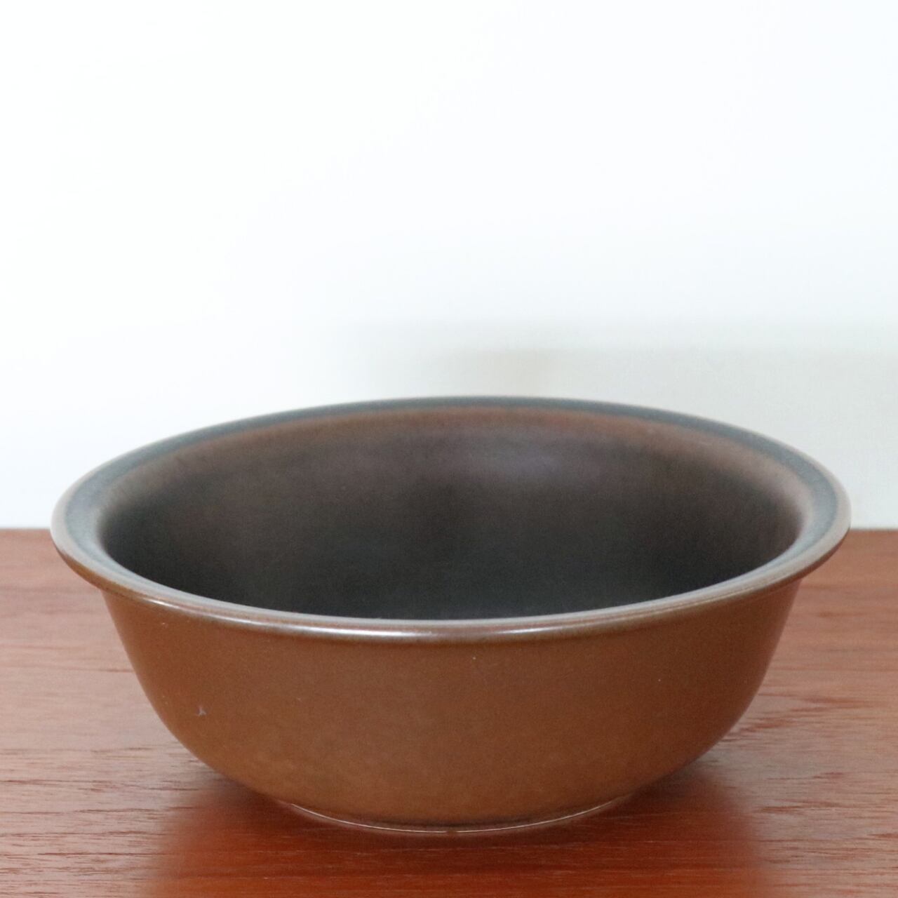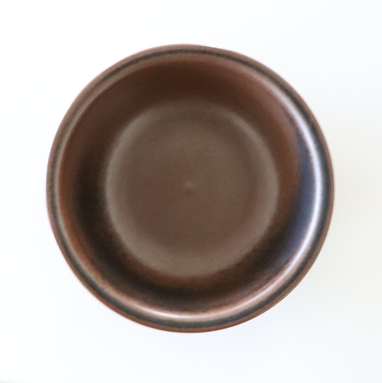 1960-1999年の間、アラビアでロングセラーとなったRuska。フォルム、デコレーションともにウラ・プロコペによるデザインとなります。 ベース地となる茶色の釉薬に鉄の粉を混ぜ込む事で一つ一つに個性を出す仕上げとなります。そのため揺らぎのある表情で、自分用にと同じシリーズでも違いが見出せることも人気のひとつです。