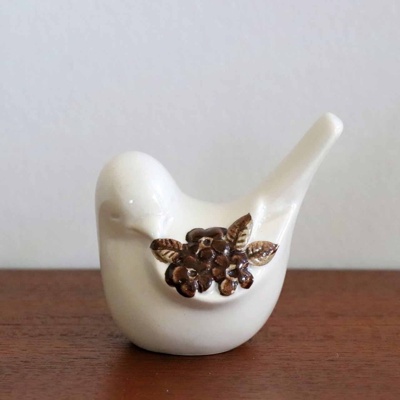 Rosa LjungがデザインしたスウェーデンDeco社の鳥のオブジェ。白地のボディに花をあしらったデザインで、Rosaが得意とするモチーフの一つです。 羽に一部色抜けのダメージがあります、価格はそれを考慮したものとなります。