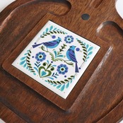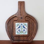 1960-70年代頃にスウェーデンで製作されたものと思われるチーズボード(カッティングボード)。青い鳥が向かい合う陶板が優しい雰囲気をかもしだしています。タイルの周囲は掘り込みがあり、リズムの有るテーブルコーディネートをお楽しみいただけそうです。壁掛け用に製作されており、壁面を飾っても絵になります。