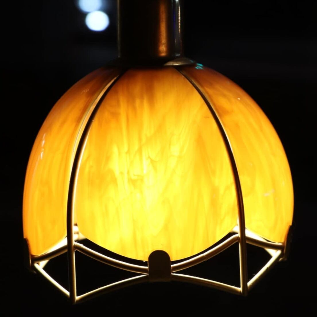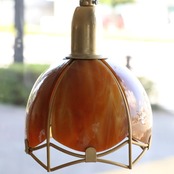 1970年代頃、スウェーデンで製作されたペンダントランプ。複雑なガラスの表情が美しいチューリップランプです。電球を灯すと下方を中心に、隙間から光がもれ幻想的で豊かな雰囲気をかもしだしています。