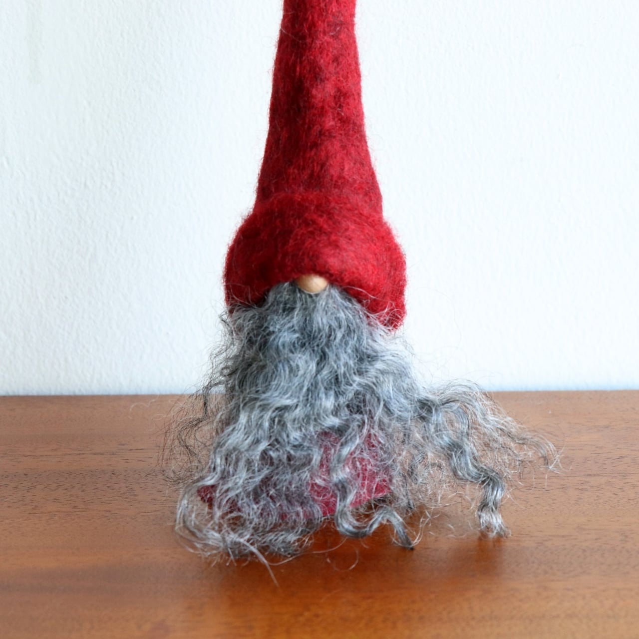 羊(ゴットランドシープ)の毛を筆頭に、アイスランド、オーストラリア、ノルウェーの羊の毛が使用されています。毛刈りから加工まですべてが手作業です。帽子と鼻に使用しているフェルトは、羊毛をこしらえることから始まり、すべて自分たちの手で製作しています。一体一体に違った個性があり、高級感と存在感のあるトムテ人形です。