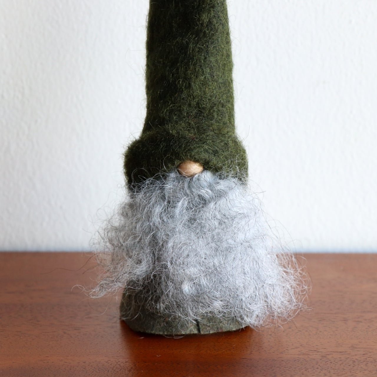 羊(ゴットランドシープ)の毛を筆頭に、アイスランド、オーストラリア、ノルウェーの羊の毛が使用されています。毛刈りから加工まですべてが手作業です。帽子と鼻に使用しているフェルトは、羊毛をこしらえることから始まり、すべて自分たちの手で製作しています。一体一体に違った個性があり、高級感と存在感のあるトムテ人形です。