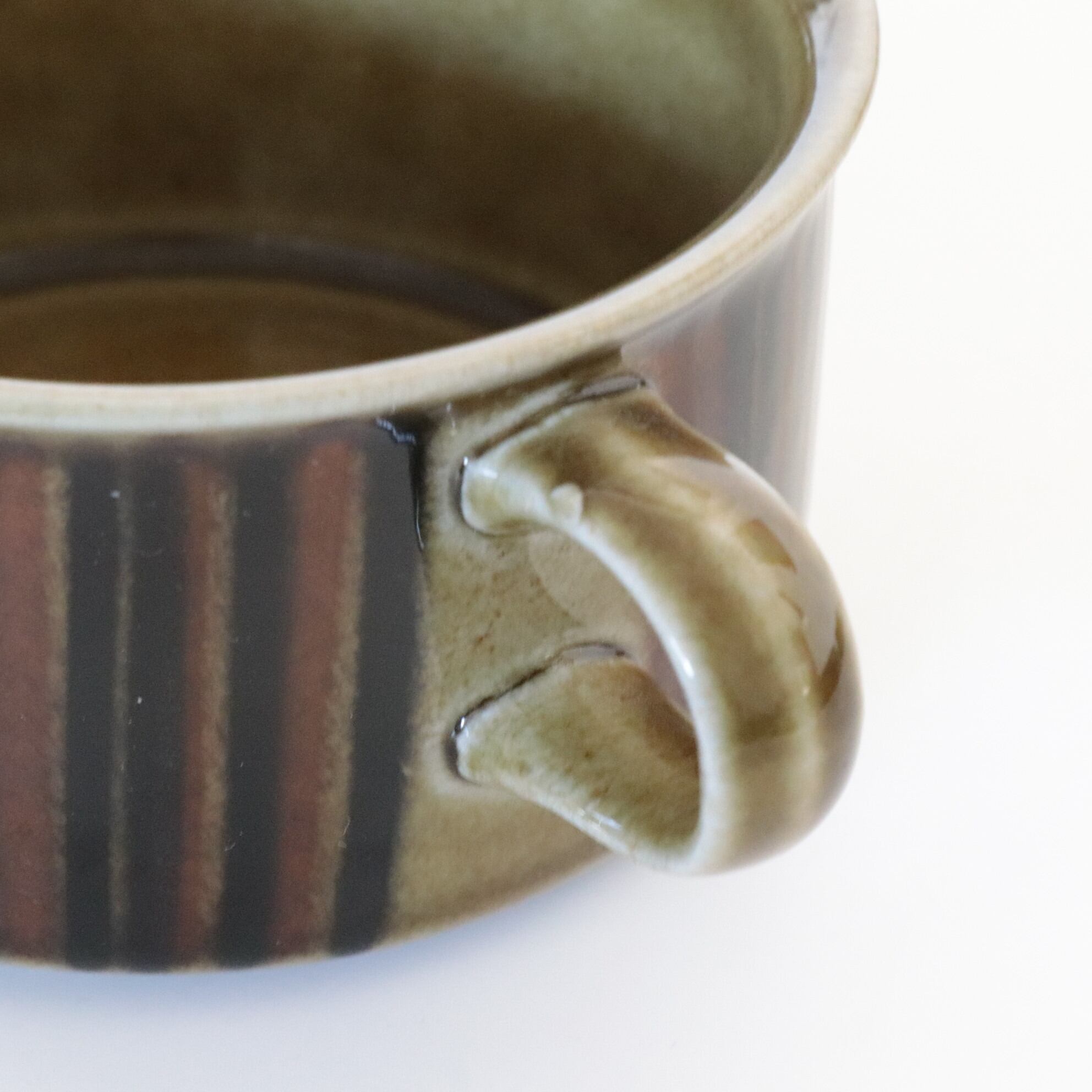 ステンシル印刷と釉薬で描かれた表情は輪郭がはっきりとしておらず、曖昧な表情が穏やかで美しい作品です。
