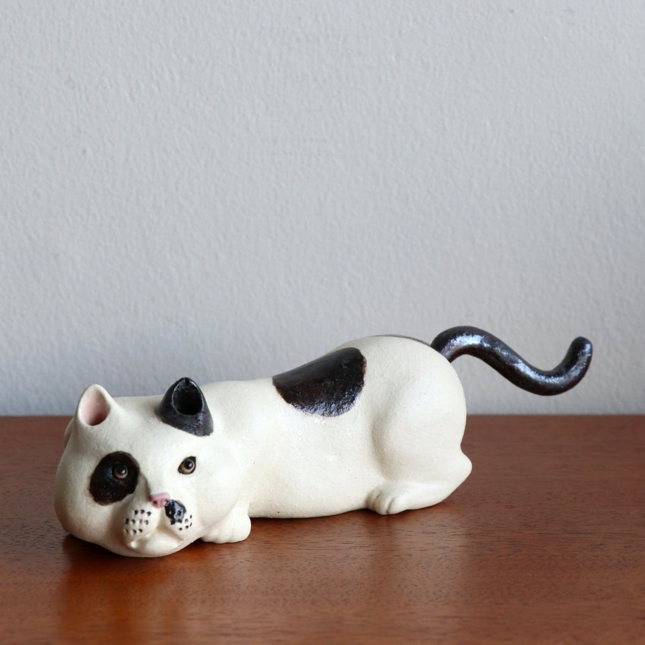 「うちのねこ」ではお預かりするお写真をもとに、オーダーメイドで陶器作品を制作いたします。こちらのフォルムデザインをベースに、表情や柄などその子の画像を参考に作家が一匹ずつ丁寧に向き合い製作させて頂きます。オーダー製作となるため、確認事項をお読みのうえご依頼をご検討くださいませ。