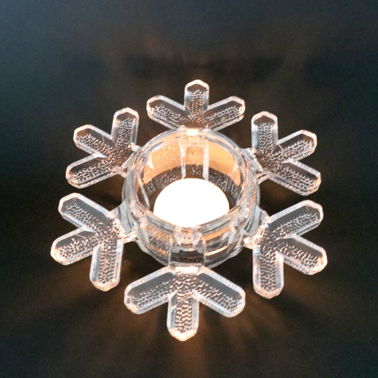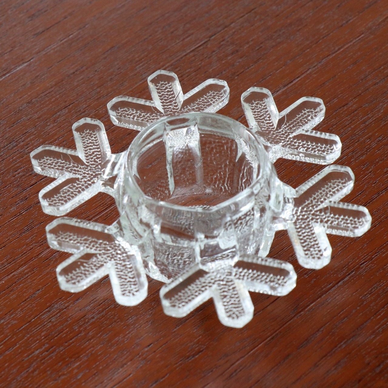 1985-1989年の間、フィンランドのiittalaで製作されたスノークリスタル。雪の結晶を描いたキャンドルホルダーで、光を灯すと放射状に広がる表情が幻想的なアイテムです。
