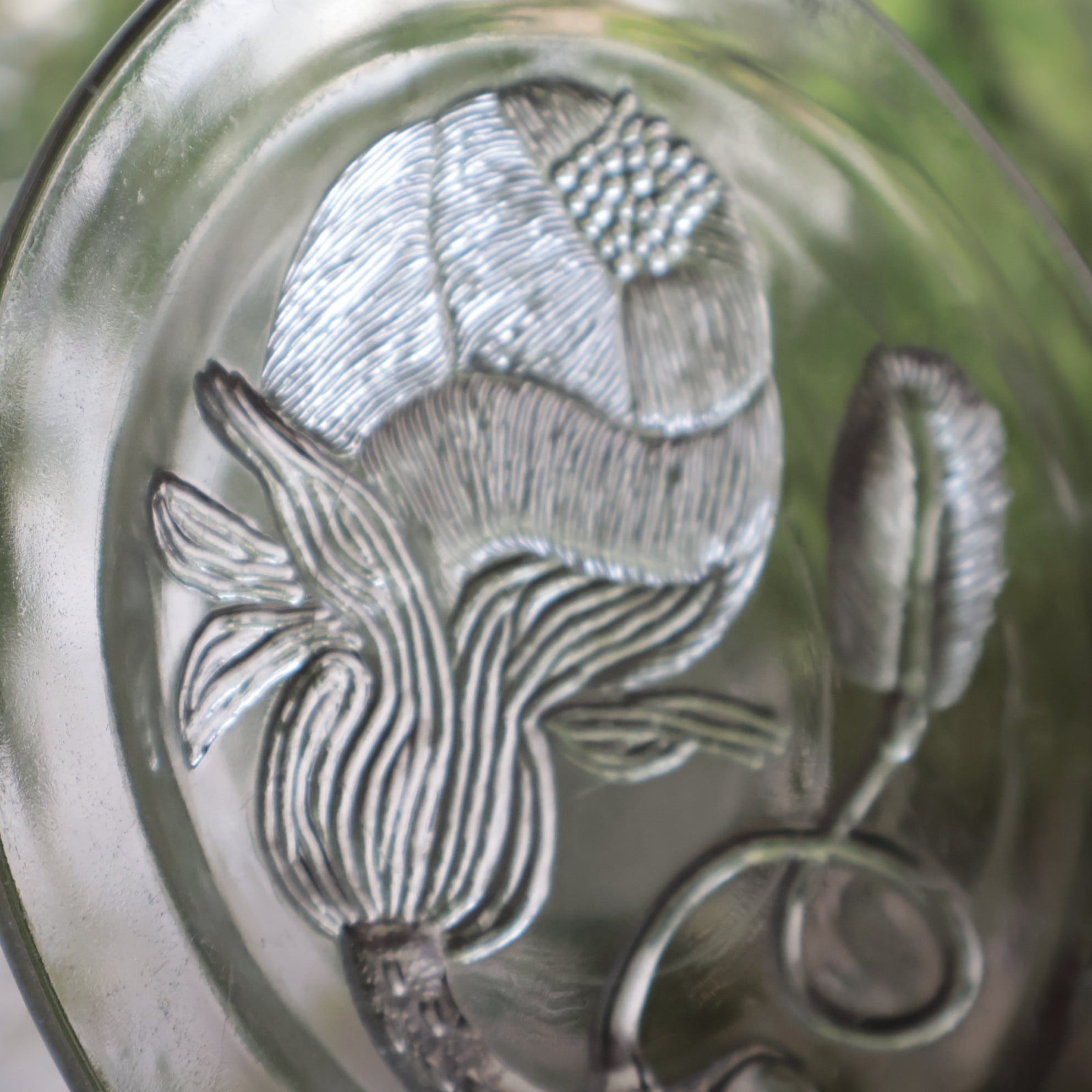 1977-1999年の間、フィンランドのヌータヤルヴィ(Nuutajärvi)で製作されたシリーズ、ピオニ。オイバ・トイッカが手掛けたシリーズで、 芍薬の花をモチーフとした作品です。フォルムの違いによって蕾から開花まで様々な段階が表現されています。製造時のものと思われるごく小さな気泡等が見られる場合があります。