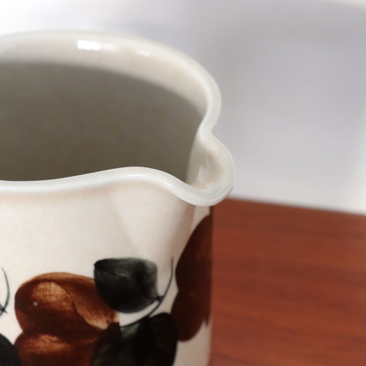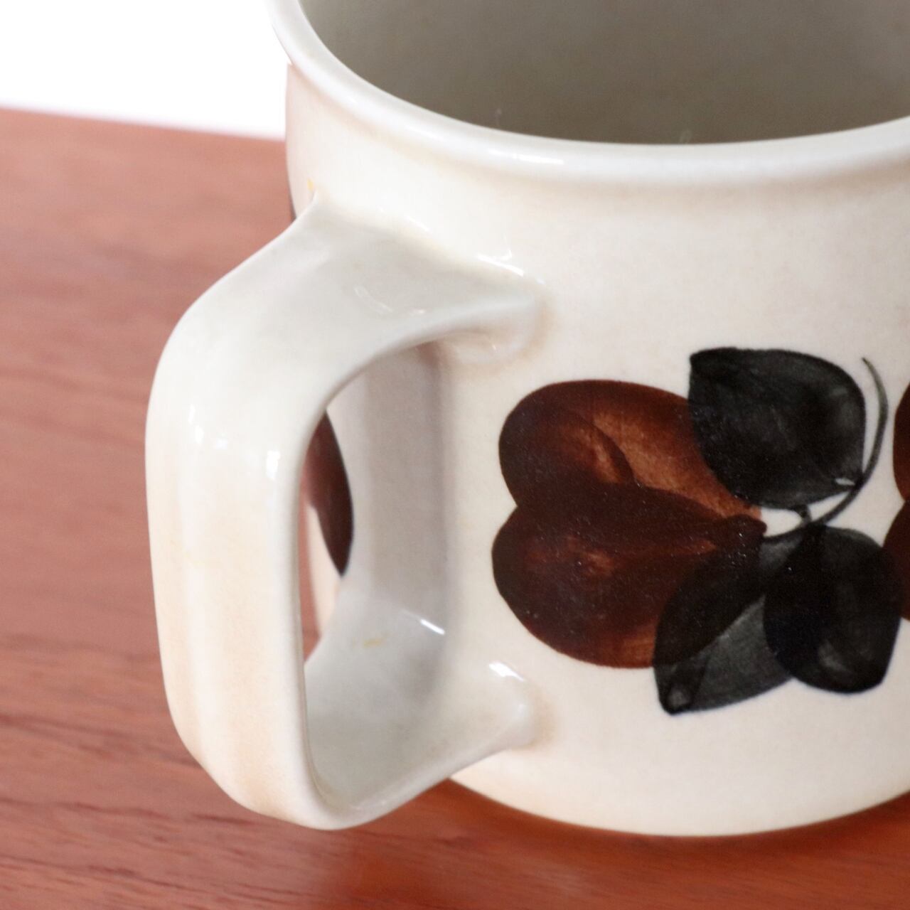 1975-81年の間、フィンランドのARABIAで製作されたRuija(ルイヤ)。 ウッラ・プロコペ(Ulla Procope)がフォルムデザイン、ライヤ・ウオシッキネン(Raija Uosikkinen)がデコレーションデザインをしたシリーズです。 ベージュの落ち着いた素地に茶色の暖かみのある花が手描きで描かれています。