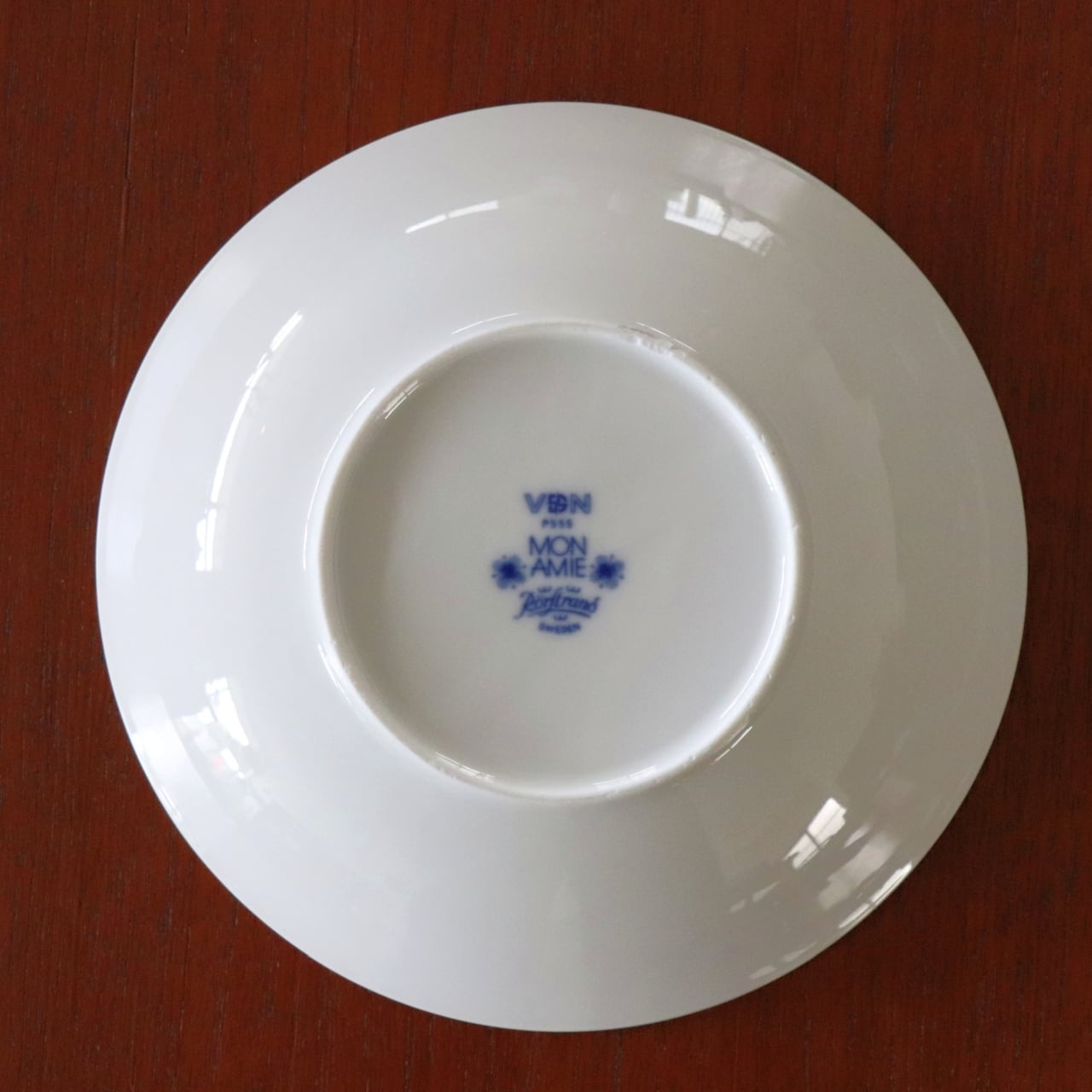 1952-1987年の間に製作されたMon Amie(モナミ)。マリアンヌ・ウェストマン(Marianne Westman)が手がけたシリーズです。モナミはフォルムデザイン、デコレーションデザインともにウェストマン自身が設計しています。モチーフはツツジの一種でSkvattramを色を変えて描かれており、薄く繊細な形状は上品かつ手触り・口当たりの良さとともに当時から大きな人気となりました。