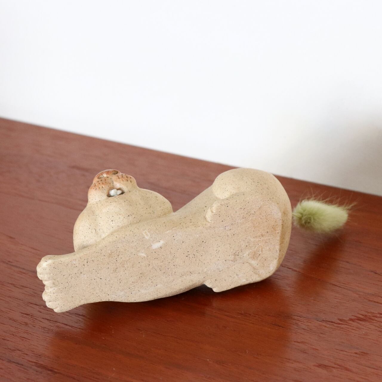 関西を中心に活躍する陶器作家、山本朱(あや)さんの陶器作品。 動物をモチーフにオブジェやブローチなどさまざまな作品を制作されている作家さんです。 無表情ななかにも何かものいいたげな、動物らしい特徴的な表情を見事に表現しています。