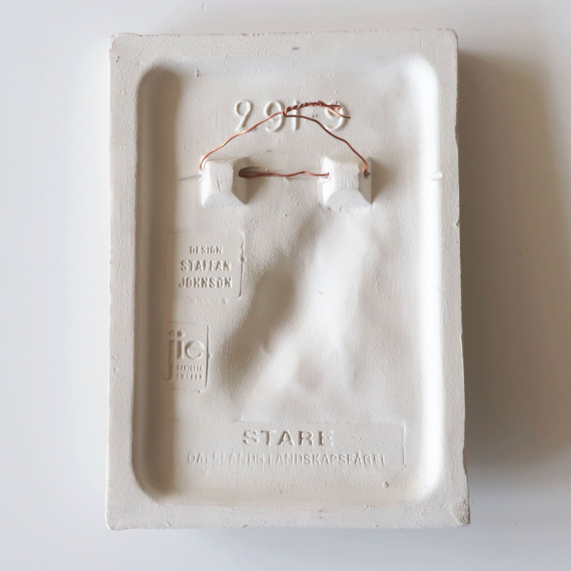こちらは「ワタリガラス(raven)」を描いた作品。スウェーデン各地に住む野鳥を描いたシリーズで、同社創業者の息子であり、鳥類学者でもあったStaffan Johnsonが手掛けたシリーズとなります。背面は壁掛けが出来るように金具が付いています。