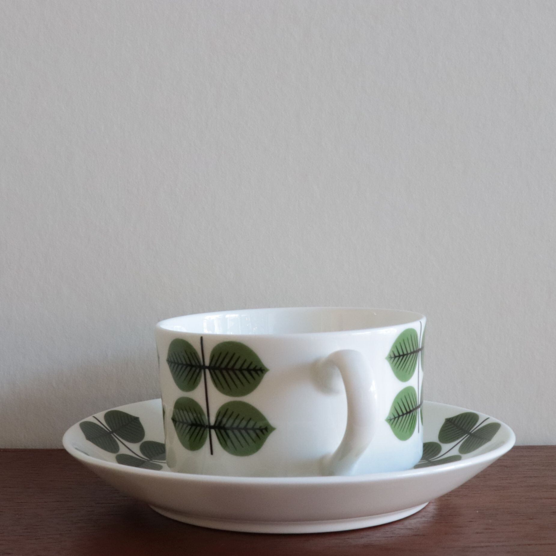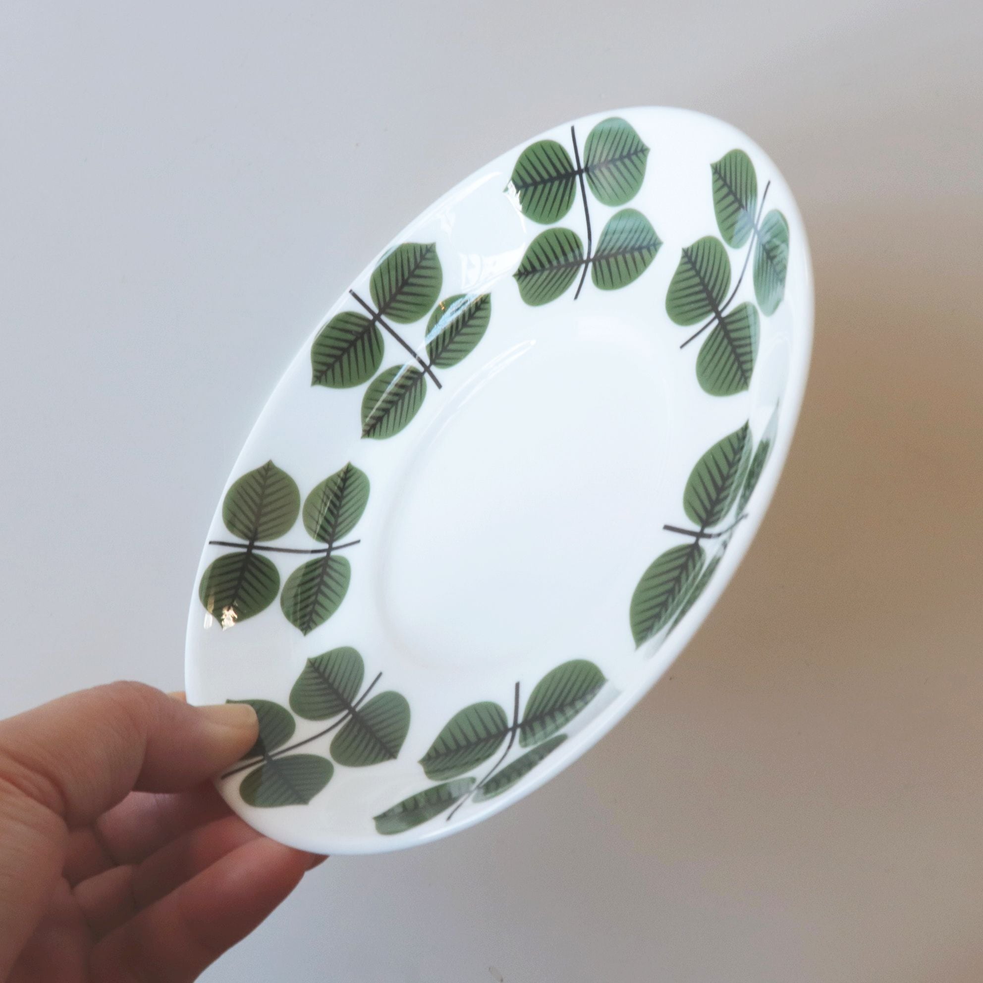 スウェーデンの陶磁器ブランド Gustavsberg(グスタフスベリ) を代表するシリーズ「Berså(ベルサ/べショー)」。 Bersaはスウェーデン語で『木陰の休憩所』を意味しており、柔らかな日差しを感じるデザインとなります。デザイナー Stig Lindberg(スティグ・リンドベリ) によって1960年代に発表された名作です。鮮やかな緑の葉が繰り返し並ぶデザインは、北欧モダンの象徴として世界中で愛されてきました。
