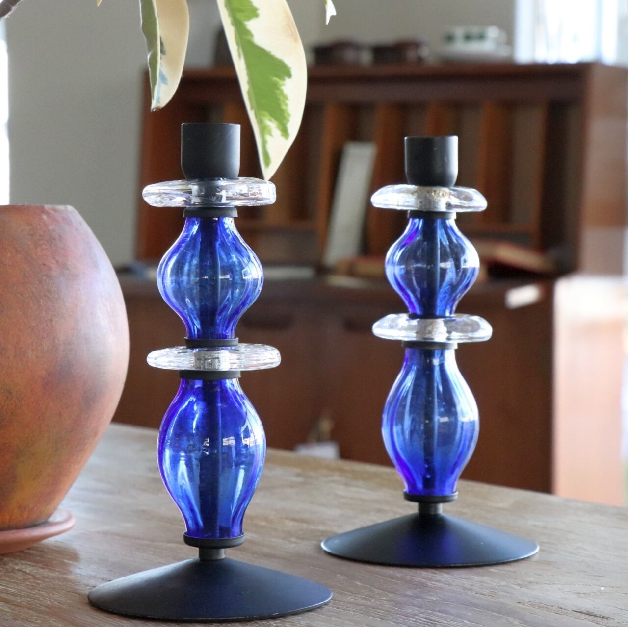 エリック・ホグランがBODAでデザインしたアイアン×ガラスのキャンドルホルダーは多様なフォルムとカラーで製作されています。中心となったのはブルーとブラウンの2色ですが、ホグランが目指したようにそのガラスは不均一で、それぞれ光を通すと表情がそれぞれ異なり一つ一つが魅惑的な作品として仕上がっています。