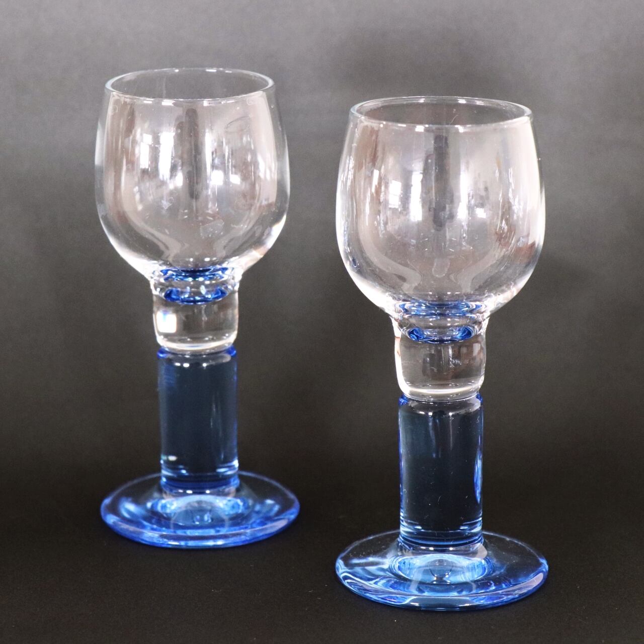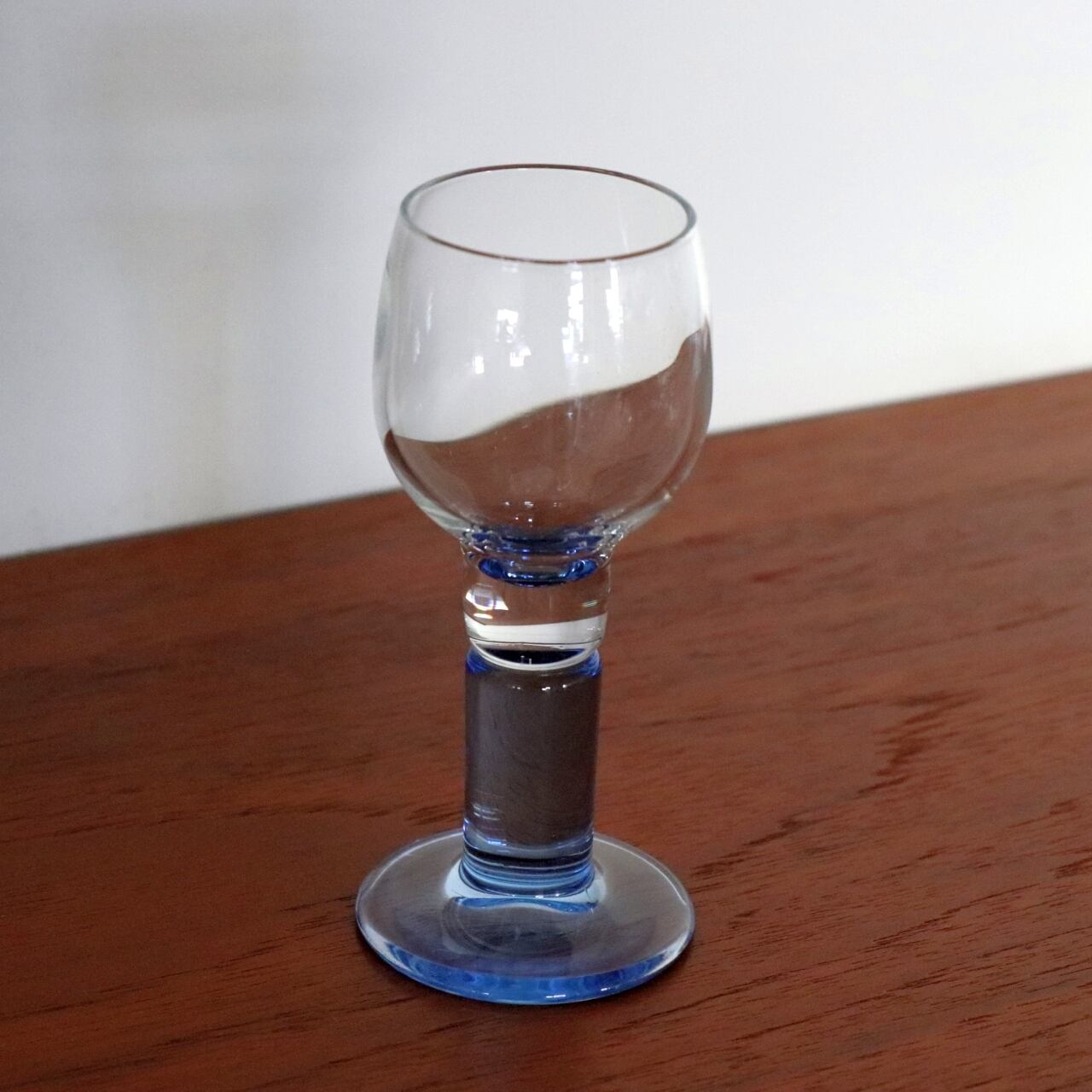 フット部分にカラーガラスを用いた印象的なデザインで、グリーンを中心に一部にブルーガラスでも製造されていたようです。足元に安定感があるため、フットグラスの中では落ち着きがあり見栄えも良いアイテムです。
