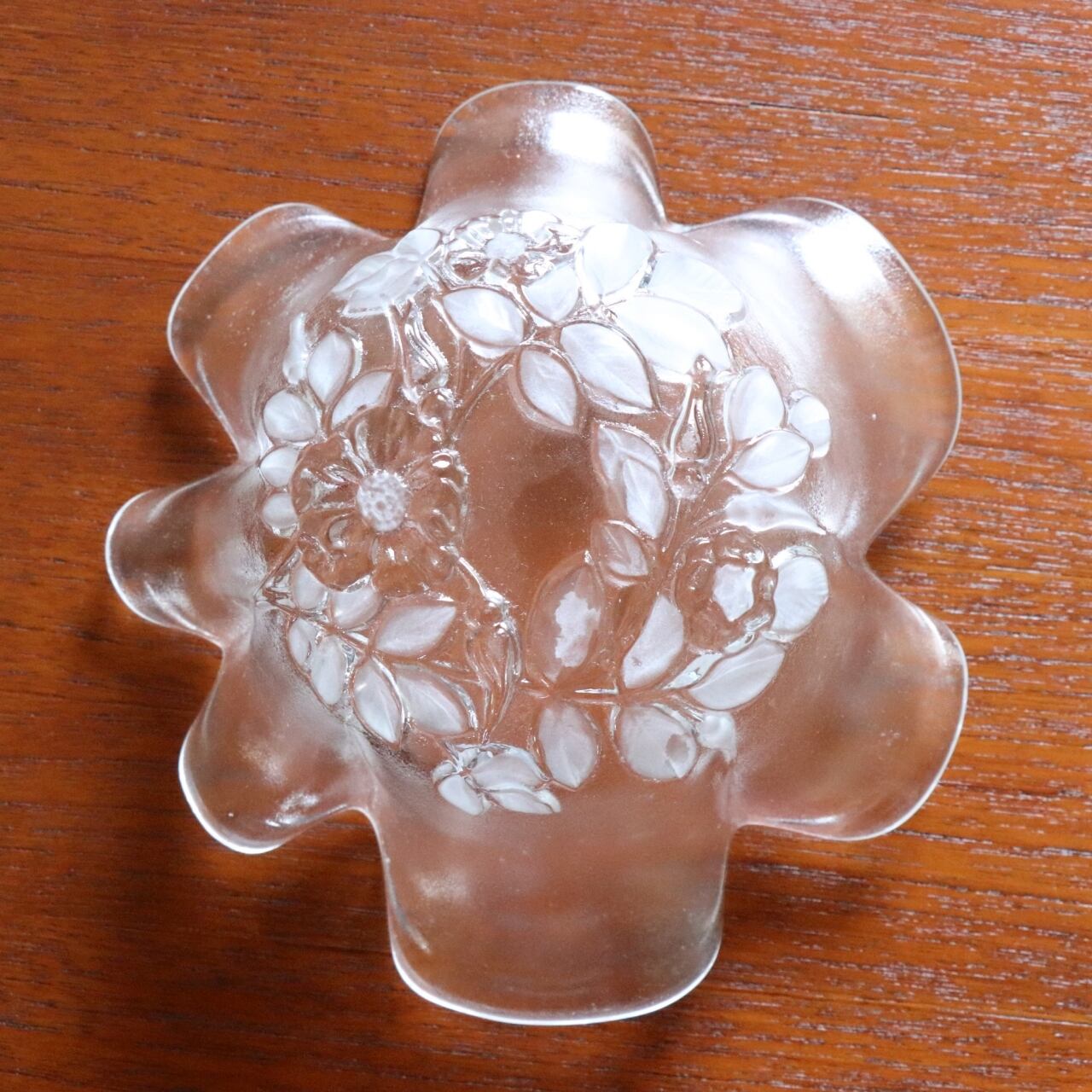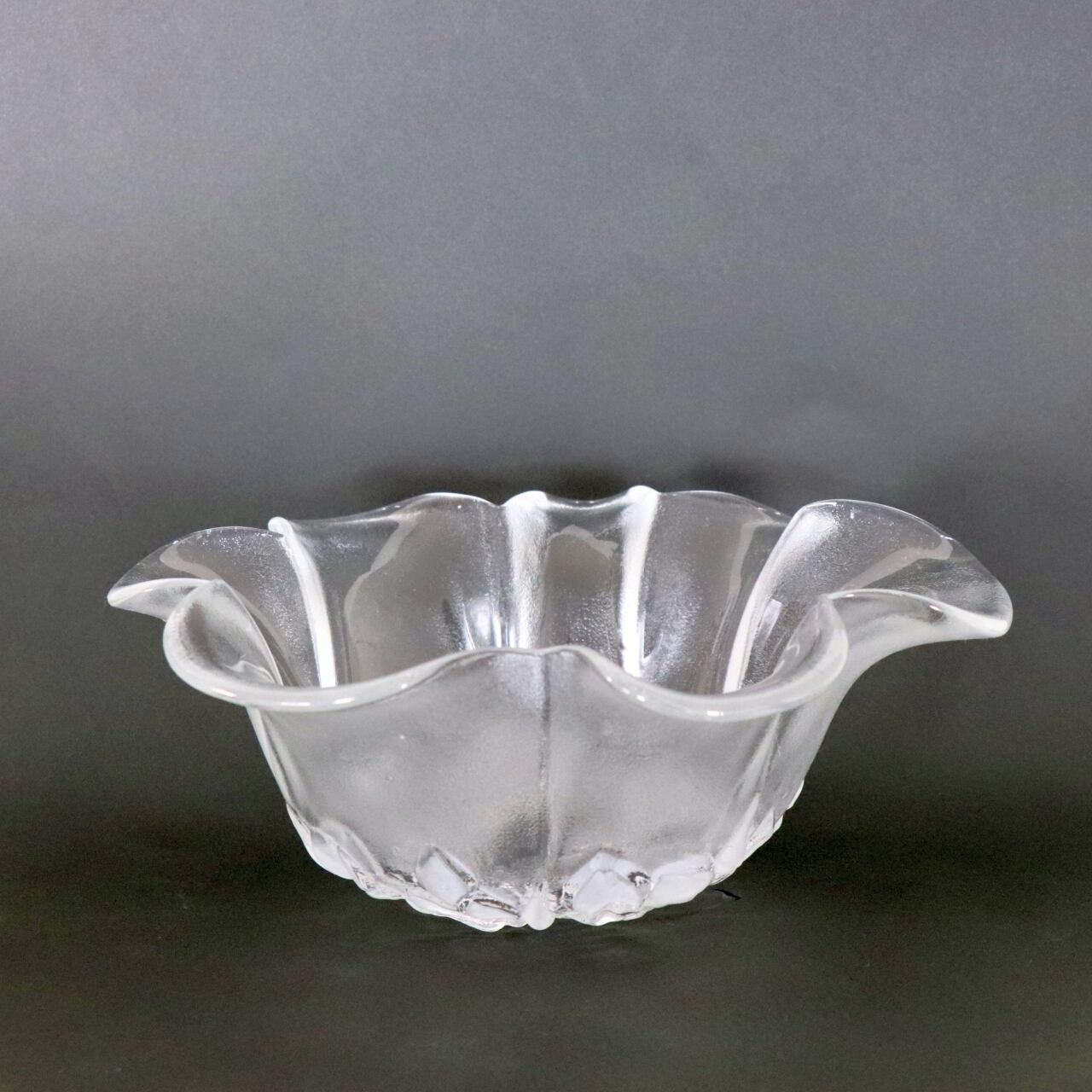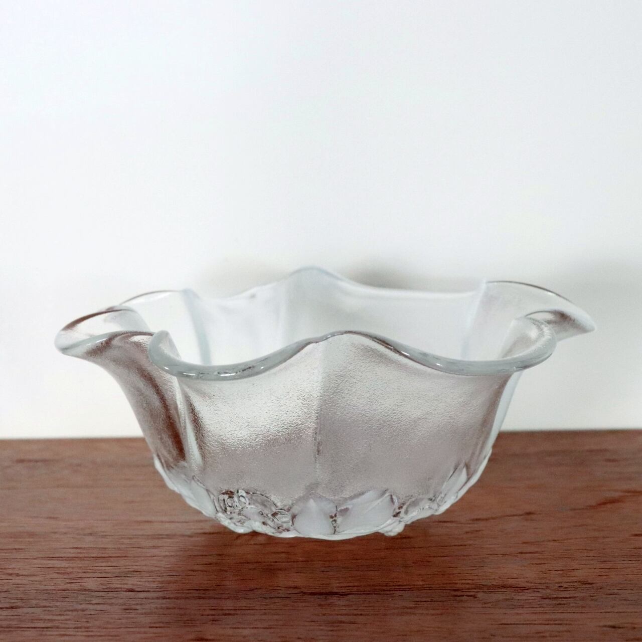 フロストガラスに花柄のプレスが象徴的なボウル。1980-1989年の間に西ドイツのMikasa(Walther Glass Mikasa Crystal)で製作されたヴィンテージです。