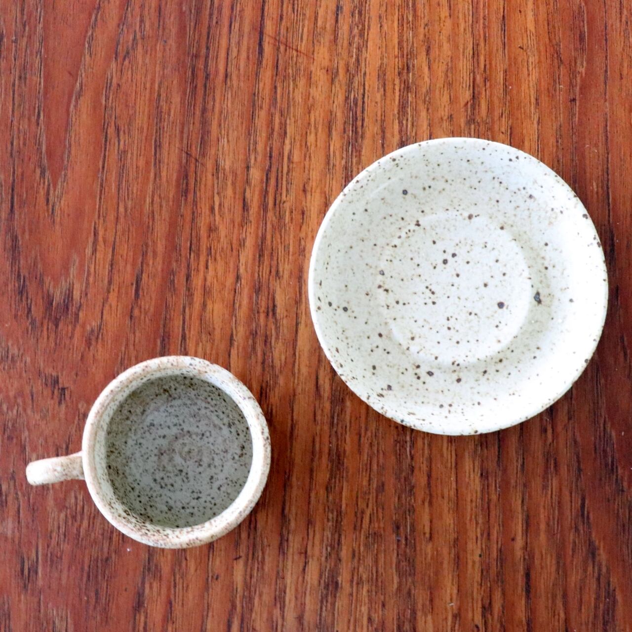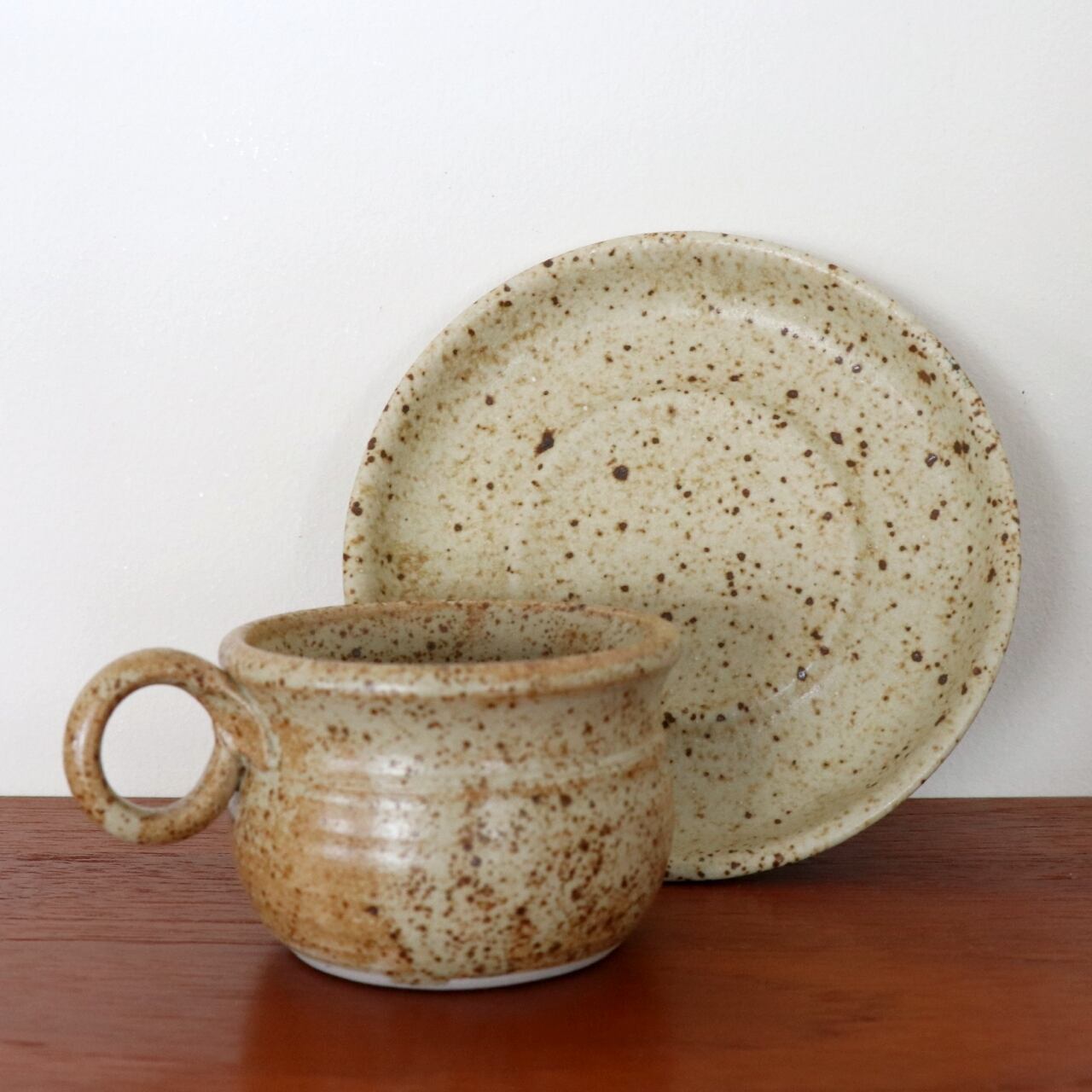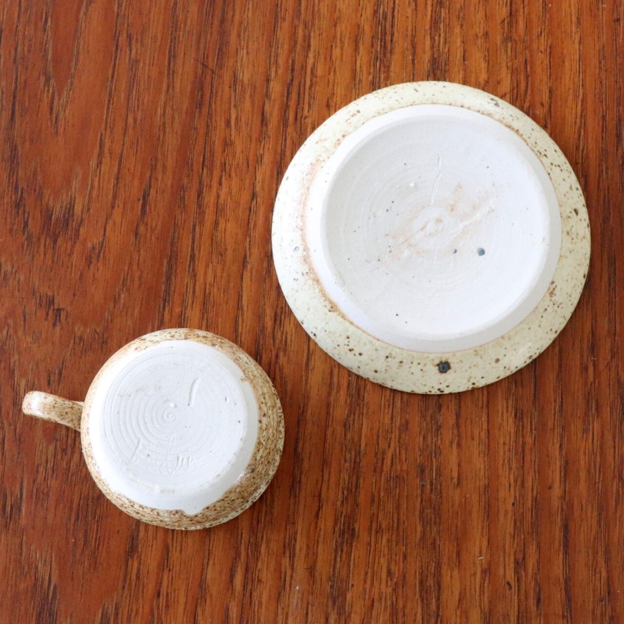 土の表情を残したプリミティブな作りのこちらのカップ&ソーサー。おそらく1980-90年代になって製作されたものと思われます。和風のテーブル環境にも相性が良いデザインです。
