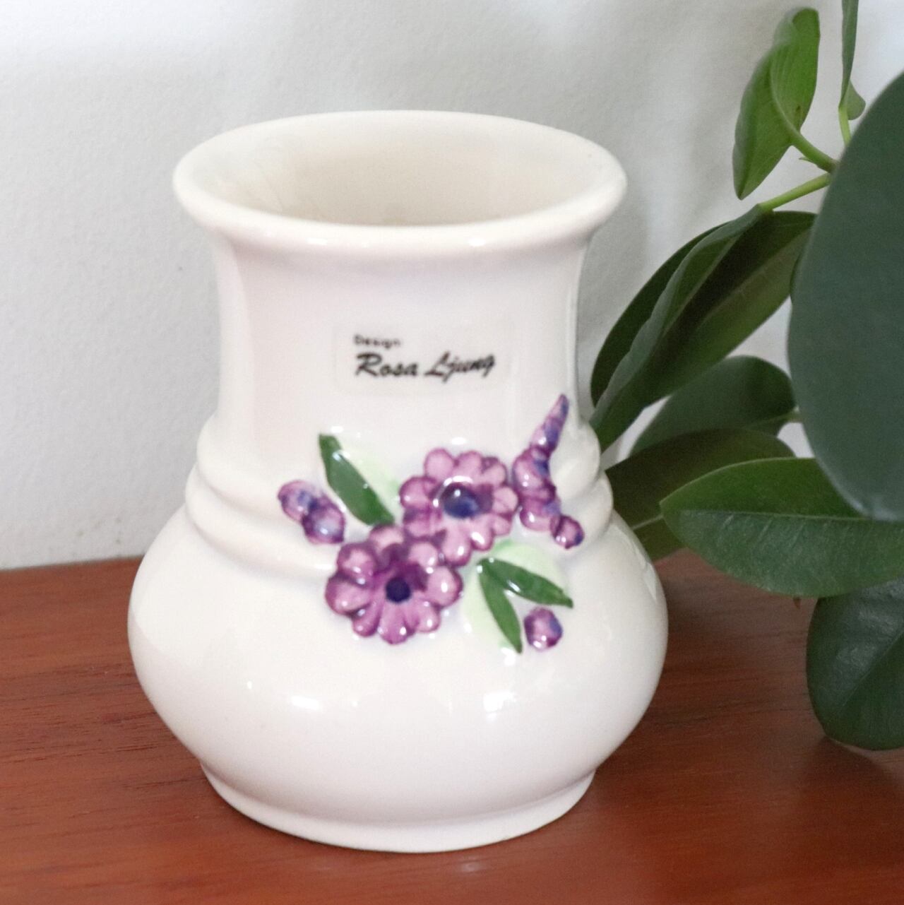 Rosa LjungがデザインしたスウェーデンDeco社のフラワーベース。白地のボディに花をあしらったデザインで、Rosaが得意とするモチーフの一つです。