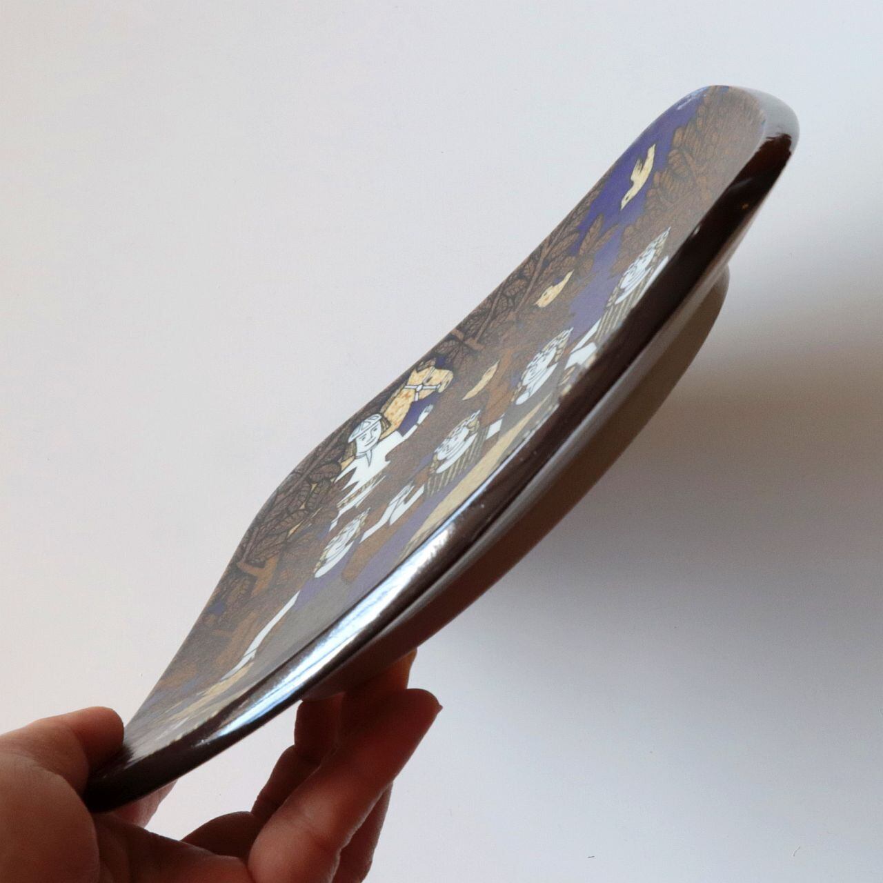 1976年から1999年にかけて、フィンランドの名窯Arabia(アラビア)で製作されたKalevala(カレワラ)シリーズのイヤープレート。第14作目にあたる1989年のプレートは、フィンランドの叙事詩『カレワラ』を題材に、Raija Uosikkinen(ライヤ・ウオシッキネン)が装丁を手がけたものです。
