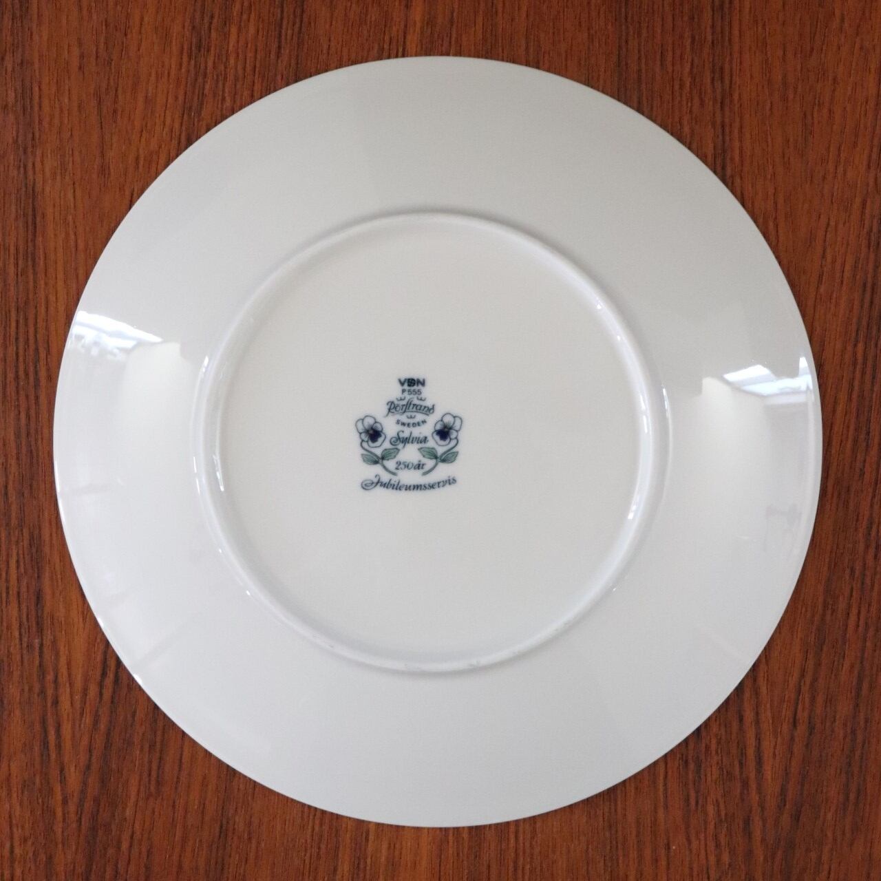 華やかで品の良い柄に加え、バックスタンプにも同じ花と250år(=250周年)、Jubileumsservis(=アニバーサリーサービス)と描かれた特別なモデルです。