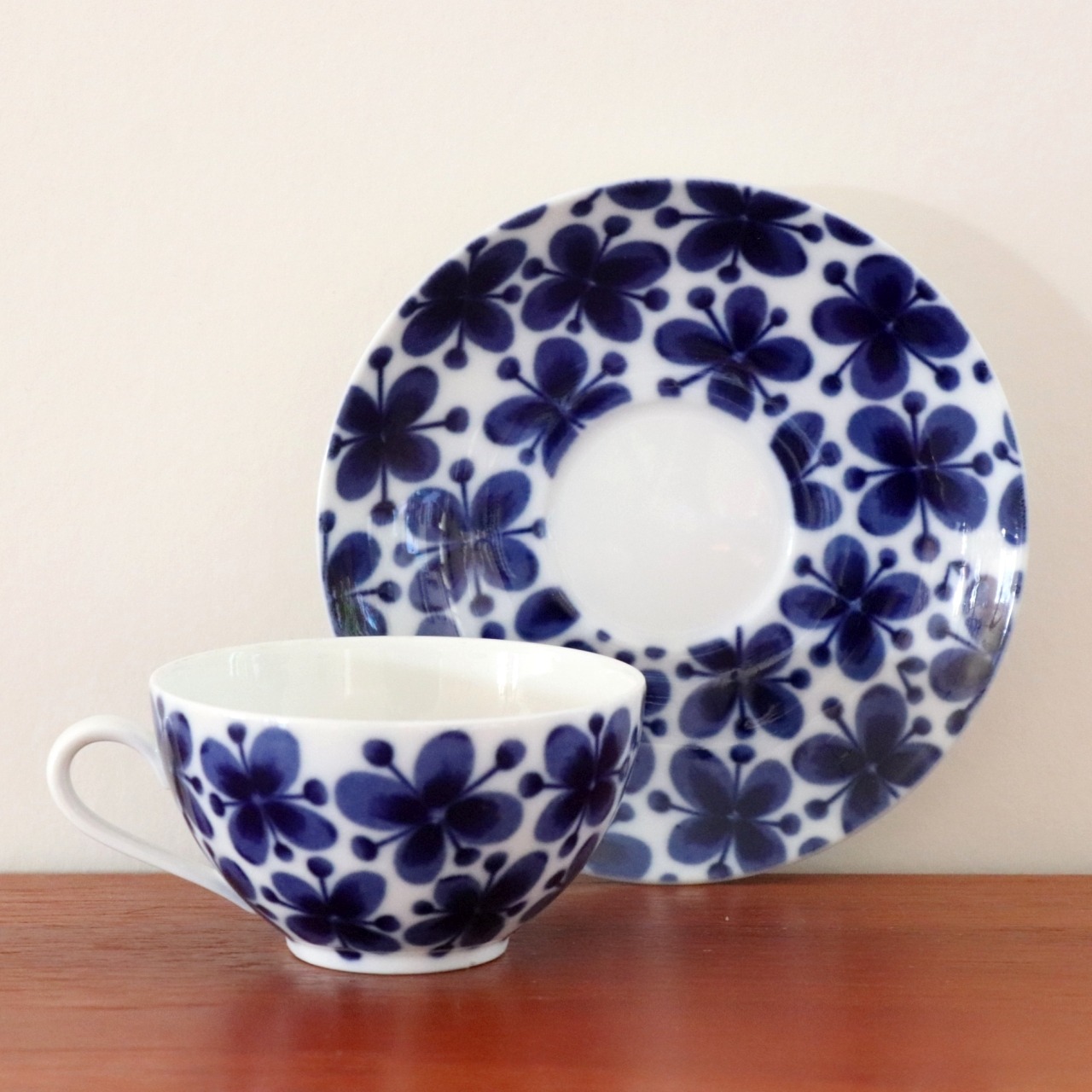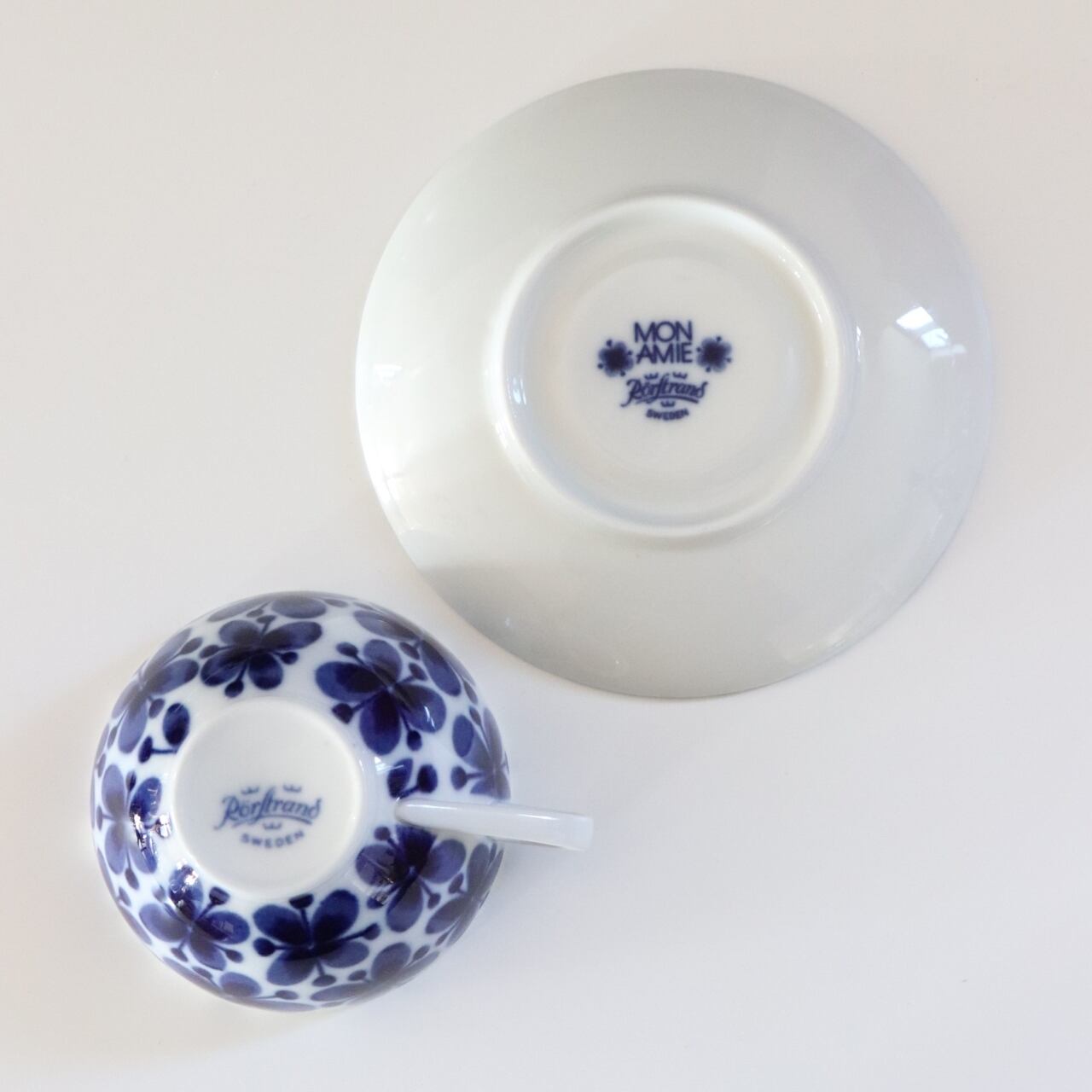 1952-1987年の間に製作されたMon Amie(モナミ)。マリアンヌ・ウェストマン(Marianne Westman)が手がけたシリーズです。モナミはフォルムデザイン、デコレーションデザインともにウェストマン自身が設計しています。モチーフはツツジの一種でSkvattramを色を変えて描かれており、薄く繊細な形状は上品かつ手触り・口当たりの良さとともに当時から大きな人気となりました。