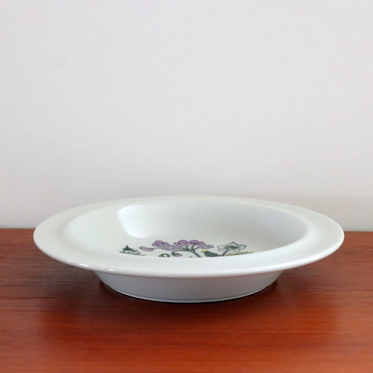 フィンランドの春の野花をモチーフに描かれたフローラ。色彩豊かで、植物画をモチーフにすることが多いエステリ・トムラらしい華やかなシリーズです。 地模様は薄いグレーがかった色合いという事もあり、甘すぎない仕上がりも魅力的です。