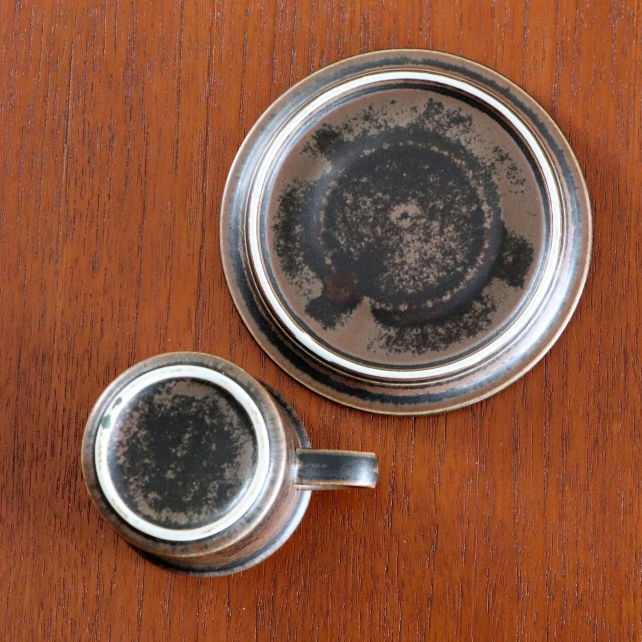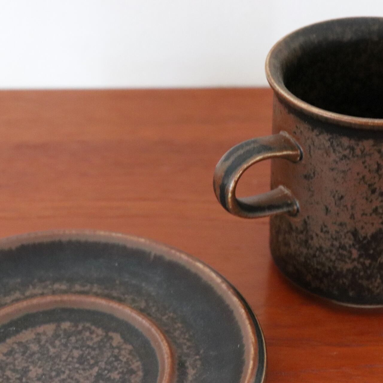 1960-1999年の間、アラビアでロングセラーとなったRuska。フォルム、デコレーションともにウラ・プロコペによるデザインとなります。 ベース地となる茶色の釉薬に鉄の粉を混ぜ込む事で一つ一つに個性を出す仕上げとなります。そのため揺らぎのある表情で、自分用にと同じシリーズでも違いが見出せることも人気のひとつです。