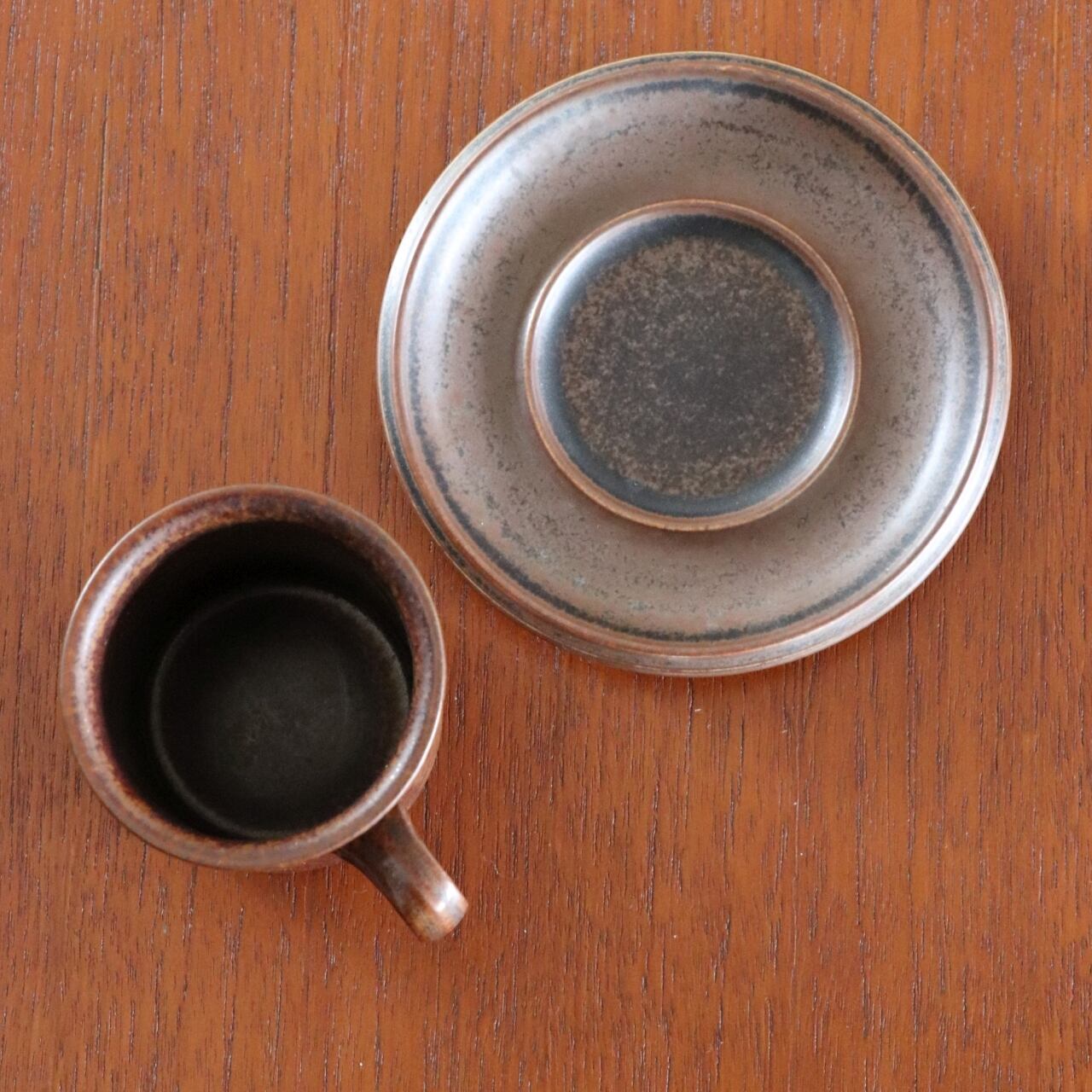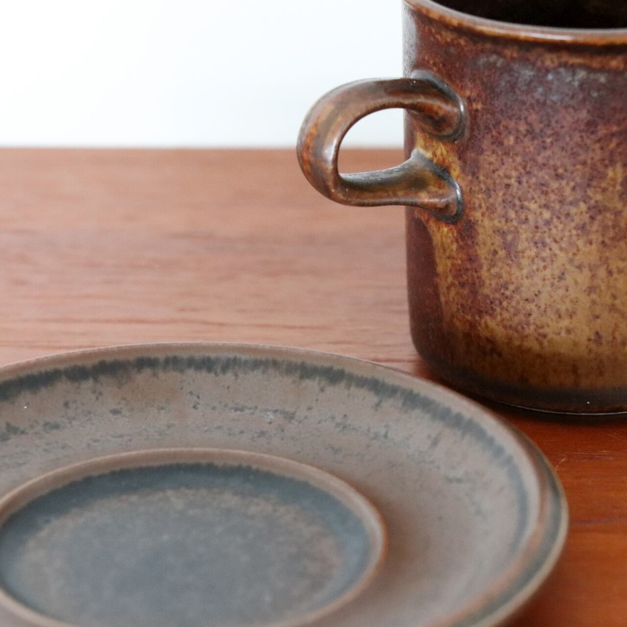 1960-1999年の間、アラビアでロングセラーとなったRuska。フォルム、デコレーションともにウラ・プロコペによるデザインとなります。 ベース地となる茶色の釉薬に鉄の粉を混ぜ込む事で一つ一つに個性を出す仕上げとなります。そのため揺らぎのある表情で、自分用にと同じシリーズでも違いが見出せることも人気のひとつです。