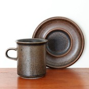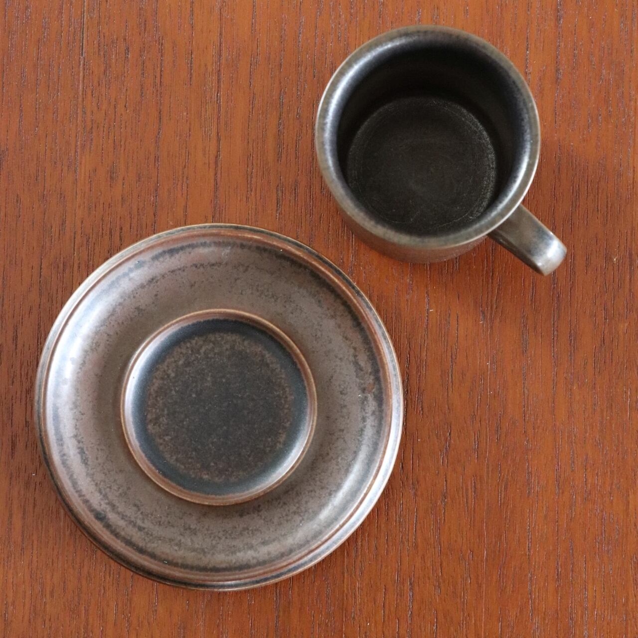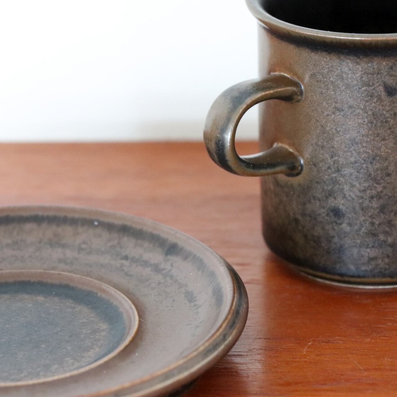 1960-1999年の間、アラビアでロングセラーとなったRuska。フォルム、デコレーションともにウラ・プロコペによるデザインとなります。 ベース地となる茶色の釉薬に鉄の粉を混ぜ込む事で一つ一つに個性を出す仕上げとなります。そのため揺らぎのある表情で、自分用にと同じシリーズでも違いが見出せることも人気のひとつです。