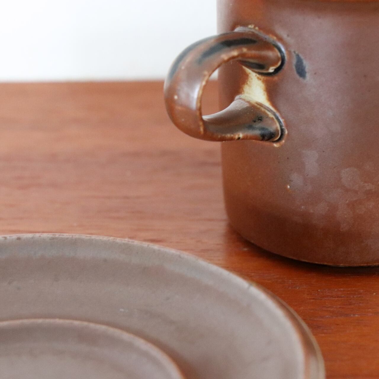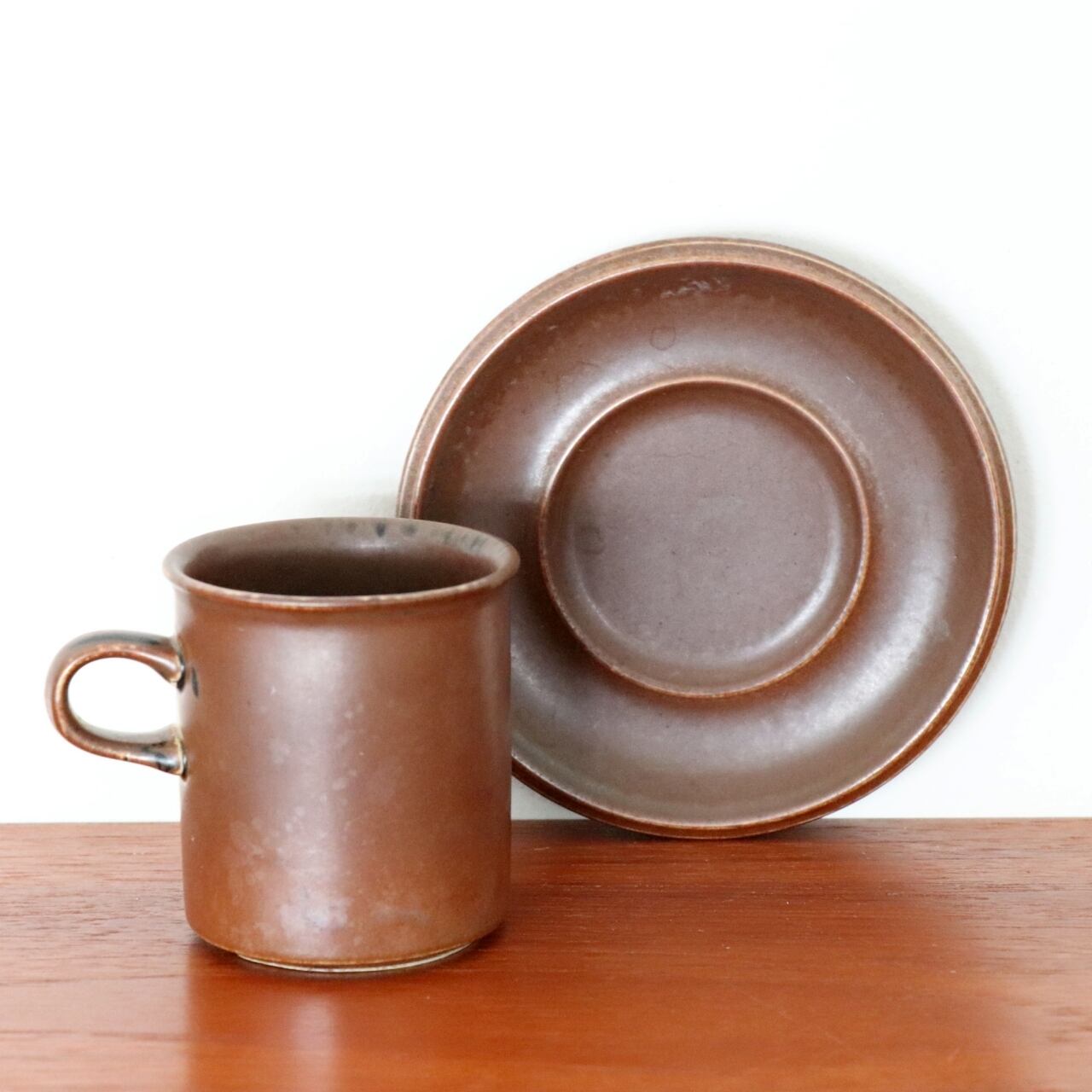 1960-1999年の間、アラビアでロングセラーとなったRuska。フォルム、デコレーションともにウラ・プロコペによるデザインとなります。 ベース地となる茶色の釉薬に鉄の粉を混ぜ込む事で一つ一つに個性を出す仕上げとなります。そのため揺らぎのある表情で、自分用にと同じシリーズでも違いが見出せることも人気のひとつです。
