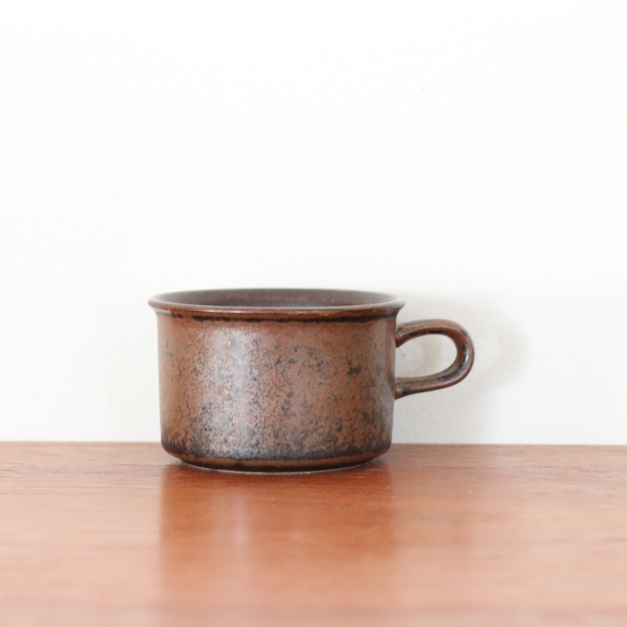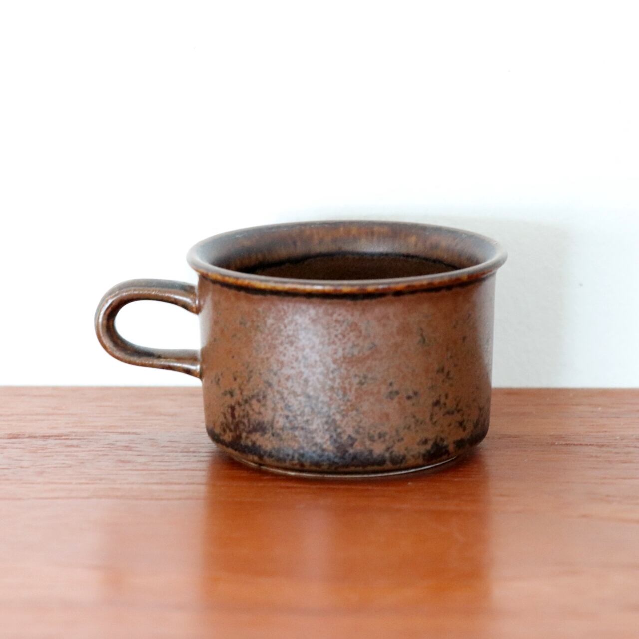 1960-1999年の間、アラビアでロングセラーとなったRuska。フォルム、デコレーションともにウラ・プロコペによるデザインとなります。 ベース地となる茶色の釉薬に鉄の粉を混ぜ込む事で一つ一つに個性を出す仕上げとなります。そのため揺らぎのある表情で、自分用にと同じシリーズでも違いが見出せることも人気のひとつです。