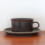 1960-1999年の間、アラビアでロングセラーとなったRuska。フォルム、デコレーションともにウラ・プロコペによるデザインとなります。 ベース地となる茶色の釉薬に鉄の粉を混ぜ込む事で一つ一つに個性を出す仕上げとなります。そのため揺らぎのある表情で、自分用にと同じシリーズでも違いが見出せることも人気のひとつです。