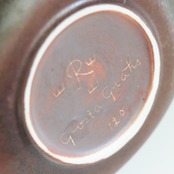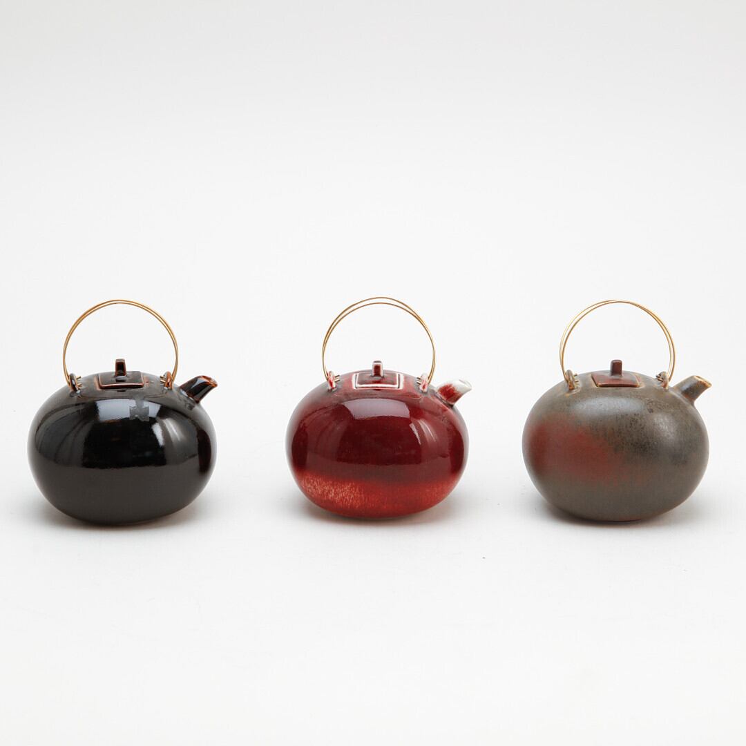 ふっくらとした丸みのあるフォルム。手のひらに置けるほどのパーソナルに近い小型なポットですが、表情は独特で空間に独特のリズムを生み出す様な存在感があります。同じフォルムで違った装飾を施した作品となり、熱烈なコレクターもいる特別なアイテムです。