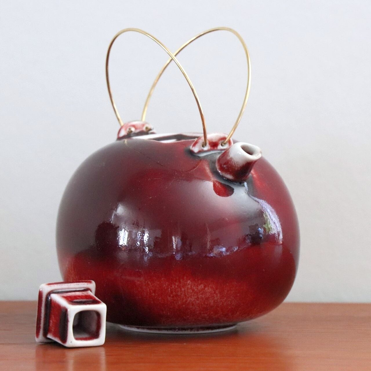 ふっくらとした丸みのあるフォルム。手のひらに置けるほどのパーソナルに近い小型なポットですが、表情は独特で空間に独特のリズムを生み出す様な存在感があります。同じフォルムで違った装飾を施した作品となり、熱烈なコレクターもいる特別なアイテムです。