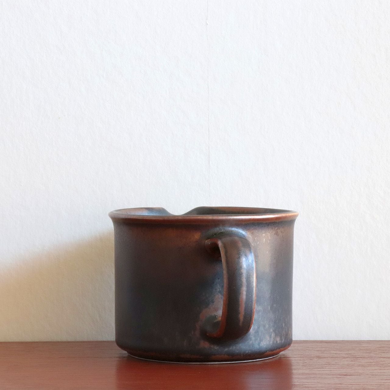 Ruskaは日本語にすると「紅葉」といった意味で、名前のように一つ一つの個体差が大きなシリーズです。ルスカは磁器で成型後、マットなブラウンの釉薬をかけその後に鉄粉を含んだ釉薬をざぶりと塗り付けます。そのため同じシリーズでありながら一点ずつ大きく個体差がうまれ、それぞれが個性的な表情で仕上がることになりました。
