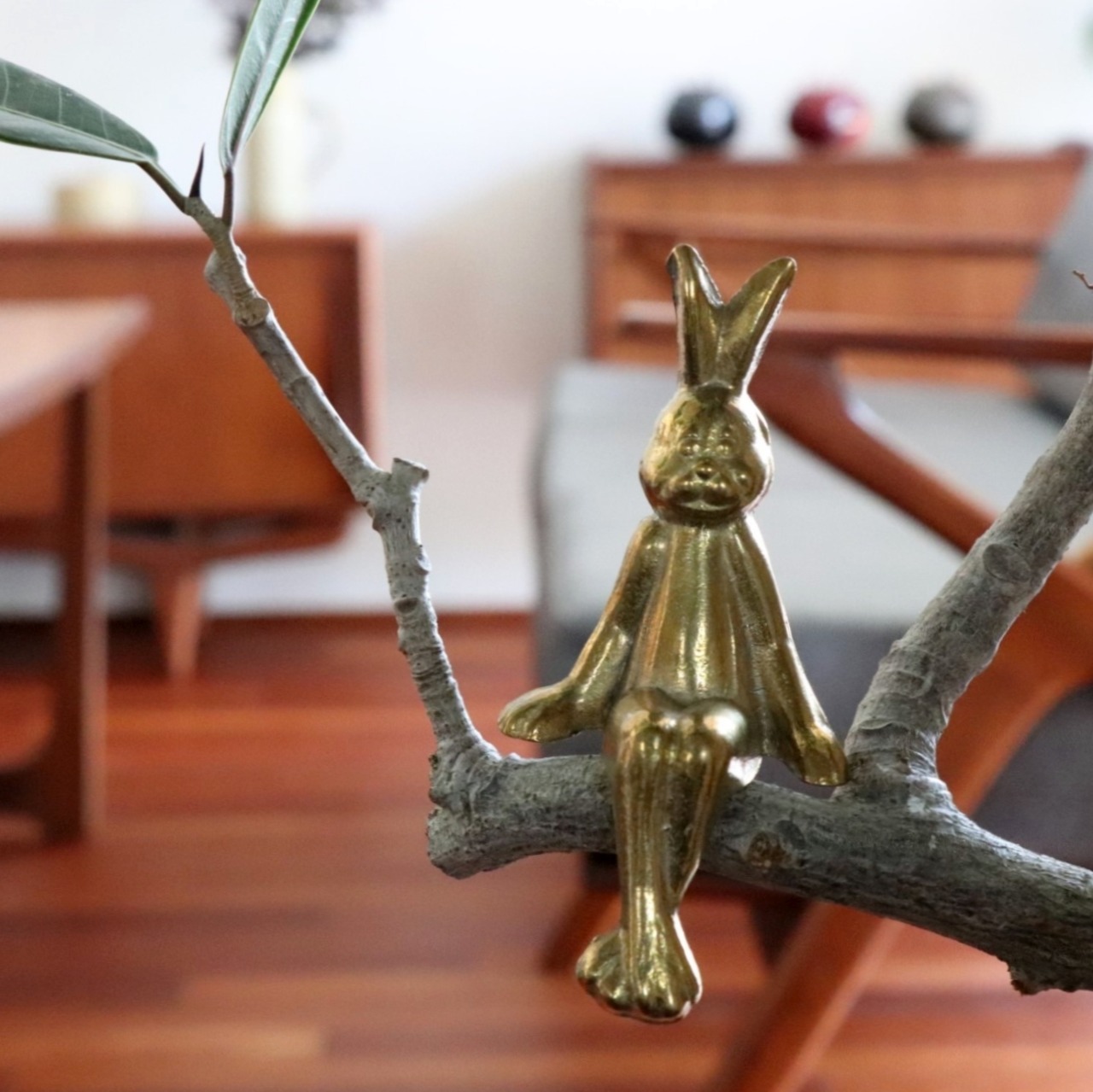 1970-80年代、ノルウェーで製作されたブラス(真鍮)製のうさぎのフィギュア。縁に座れるようなデザインで製作されています。