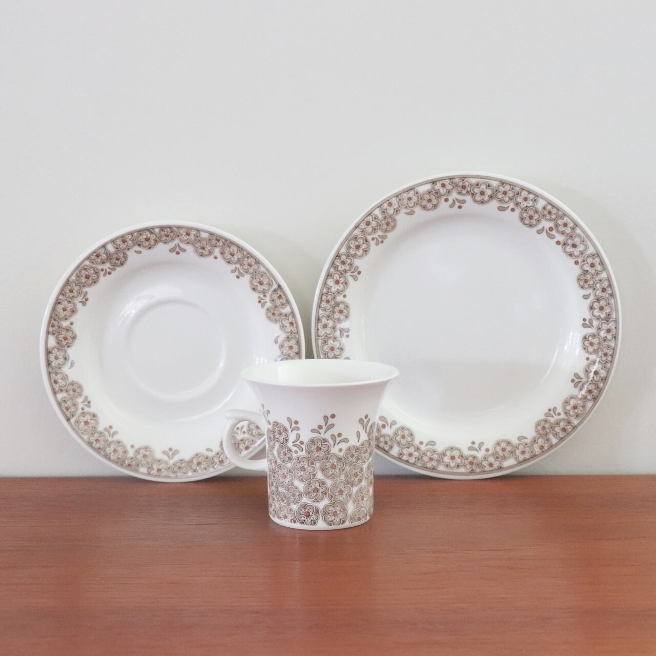 1979-1980年のわずか2年の間のみ製作されたアラビアのVeronica。Inkeri Leivoがデザインを手がけたシリーズです。 Veronica=鍬形草(クワガタソウ)の学名で、北半球に広く分布する小さな山野草から名付けられたようです。 シルクスクリーンで描かれた小花はあくまで品が良く、バックスタンプなど細部まで細かく気づかいの有るデザインです。