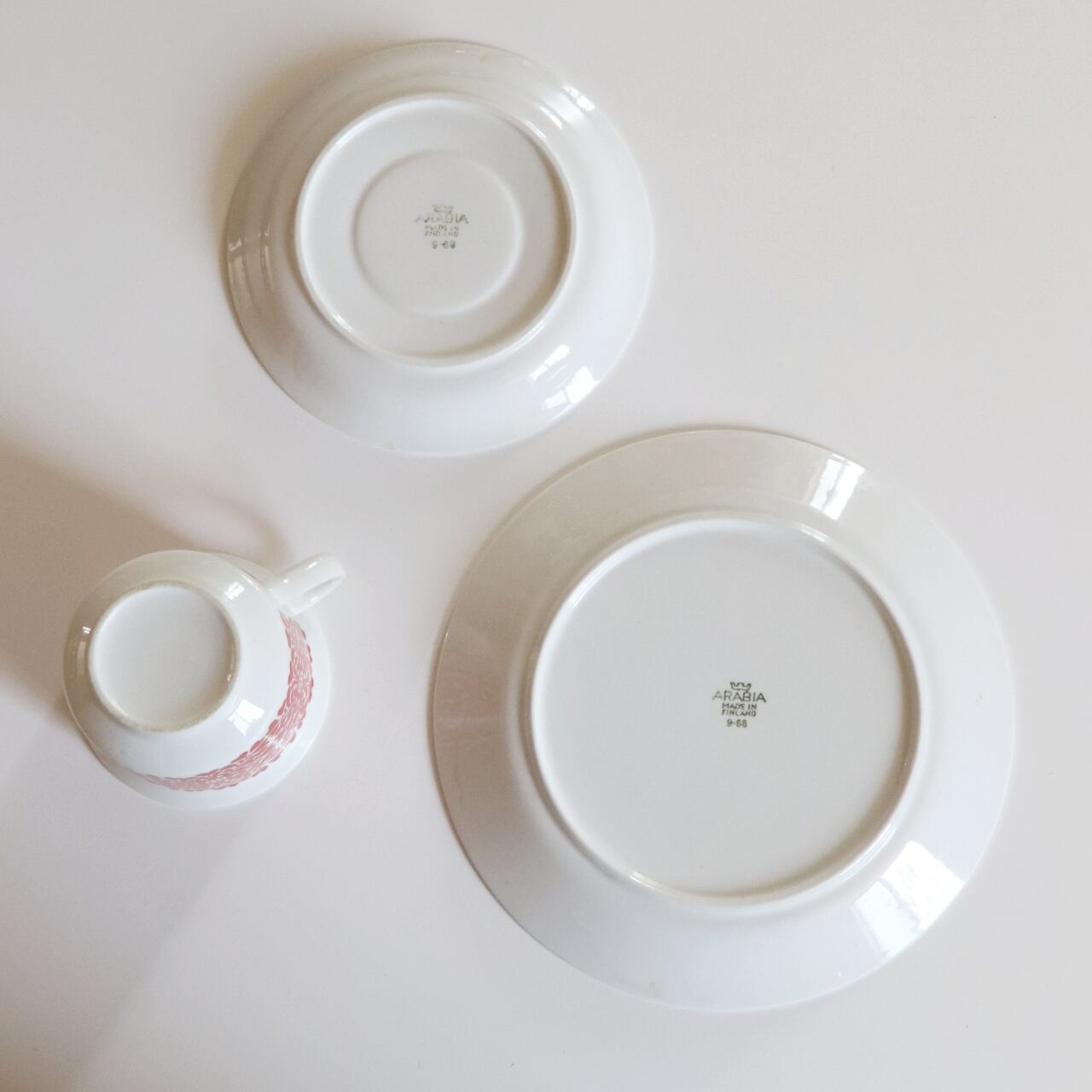 1966-1973年の間、フィンランドのARABIAで製作されたTytti(トゥッティ)。同時代によく名付けられた、フィンランドで付けられる女性の名前を冠したシリーズです。 フォルムデザイン(NEモデル)はRaija Uosikkinen、デコレーションデザインはUlla Procopeという人気のデザイナーがコラボで手掛けたシリーズです。