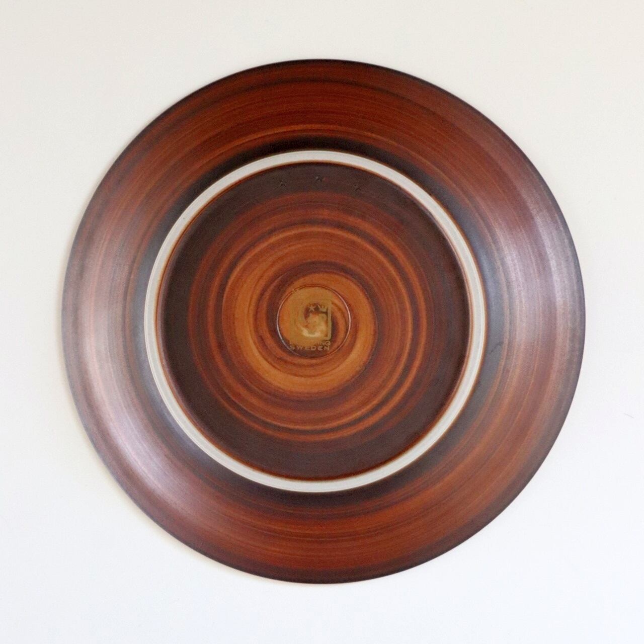 Ferro=鉄、という意味で堅牢で質実なフォルムデザインに環状の釉薬が酸化鉄によって描かれています。ディテールには金が用いられ、侘びた表情の中に一片の華やかさが光るシリーズです。バックスタンプにはLidköpingにあった工場で、ストーンウェアの製作に定評があったロールストランドの工場の一つAB Lidköpings Porslinsfabrikのスタンプが押されています。