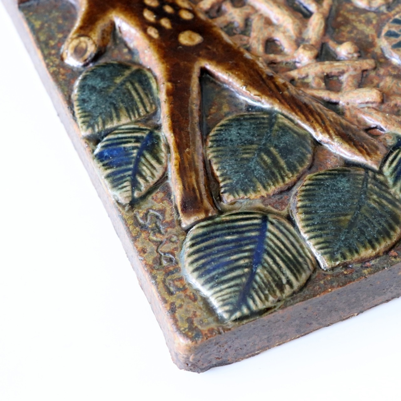 スティグ・リンドベリがグスタフスベリで製作した「巣に座る鳥」の陶板。
