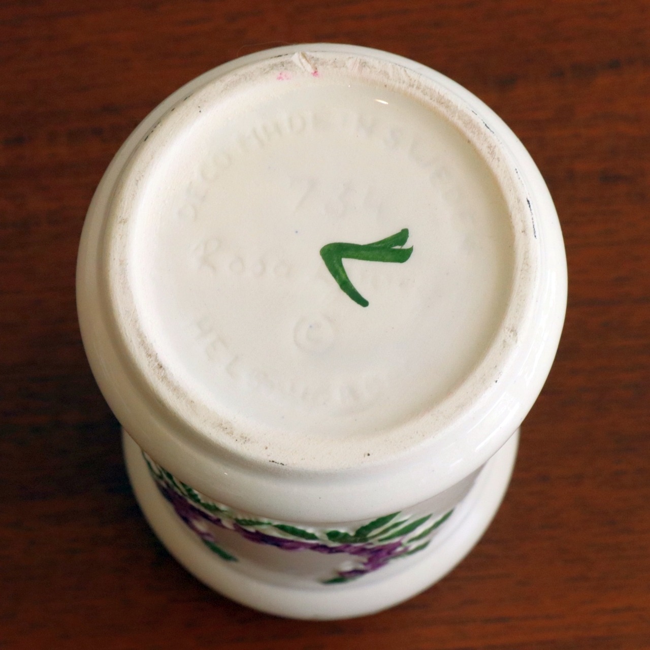 Rosa LjungがデザインしたスウェーデンDeco社のフラワーベース。白地のボディに花をあしらったデザインで、Rosaが得意とするモチーフの一つです。