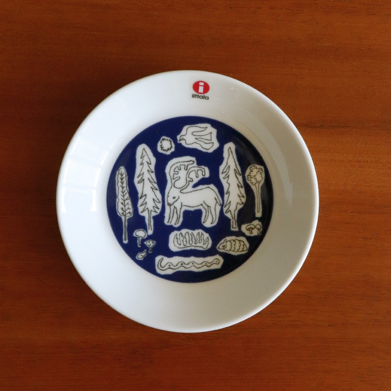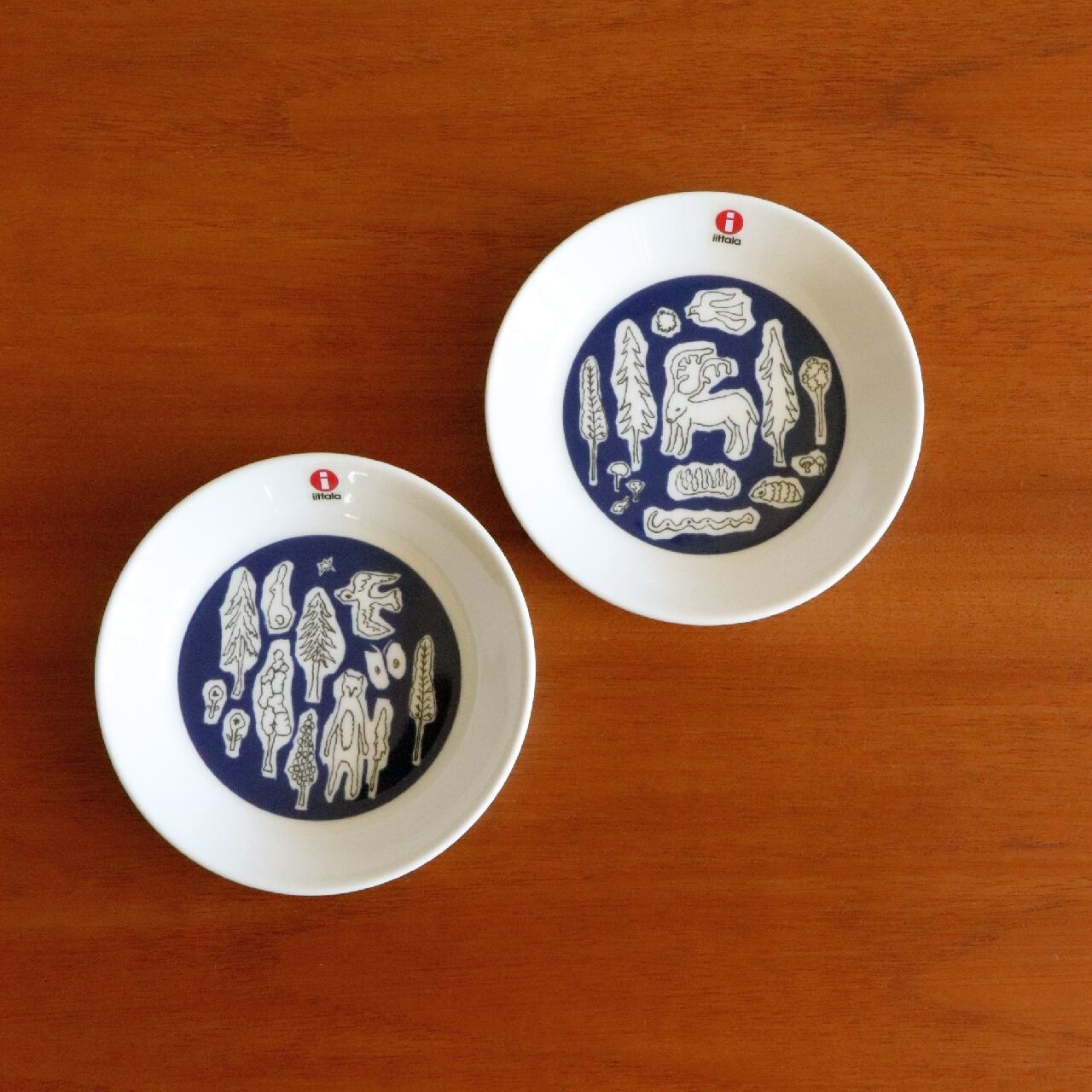 フィンランドの湖を思わせる深いブルーをベースにしており、自然の木々や花や動物が
