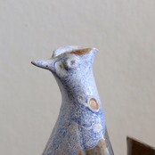 剽軽なフォルムをした青い鳥は造形としては軽やかで、それでいてどこか安定感のある仕上がりとなっています。ごく薄い釉薬をかけられているため小さな欠けが複数ありますが、それも含めて作品のアクセントのようで大きく美観を損ねず、良い仕上がりとなっています。
