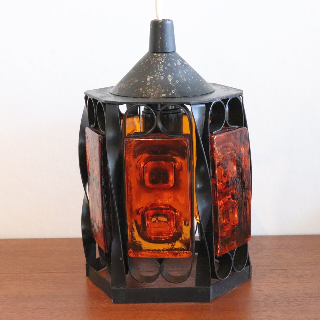 1960-70年代頃にスウェーデンで製作されたペンダントライト。エリック・ホグラン作品に見られるような厚みのある不均等なガラスが使われた味わいの強い作品です。