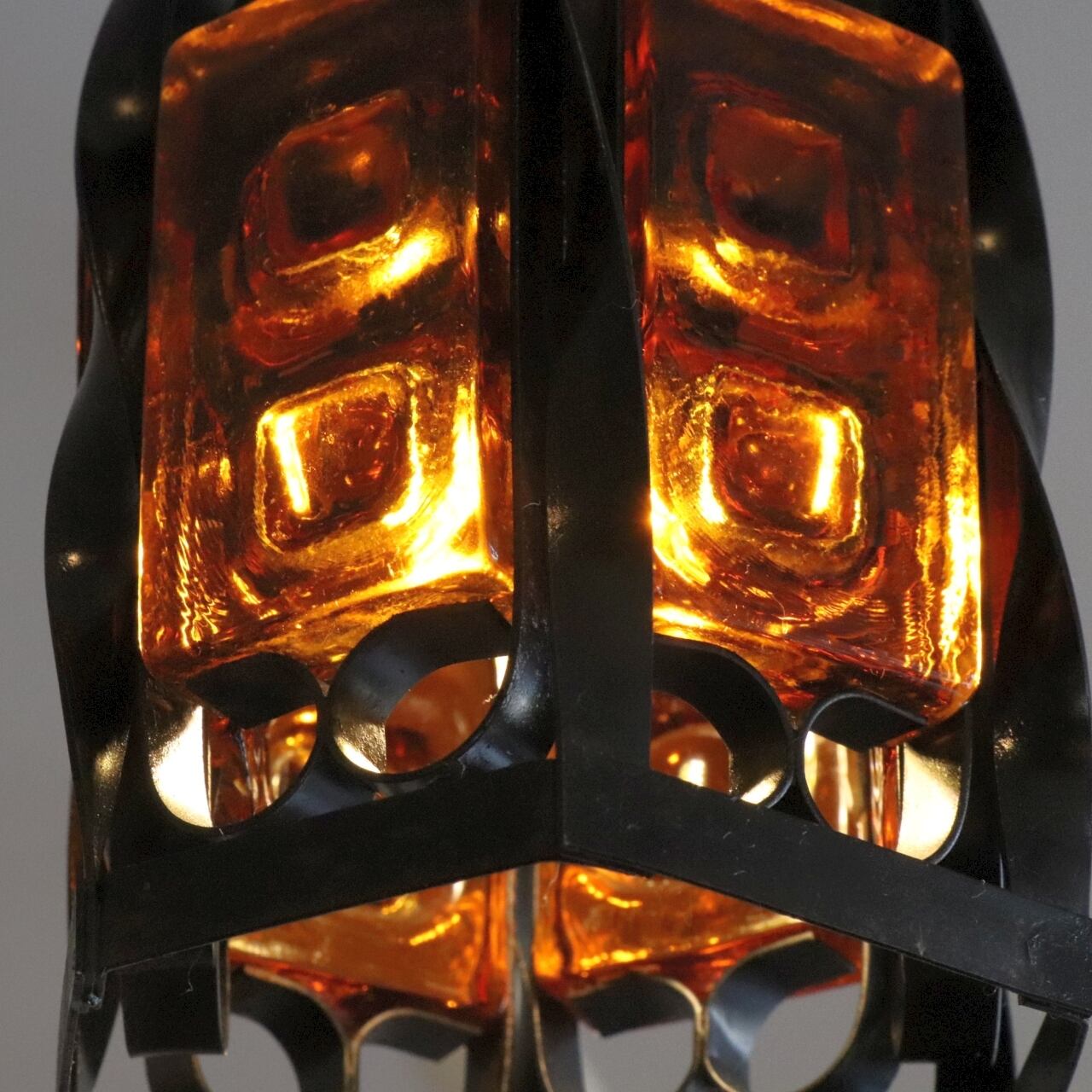 滑らかなアイアンと飴色のガラスのバランスによりレトロな表情が強い照明で、何気なく印象深い空間を演出することに向いたデザインです。サイズは小ぶりで、リビングなど広い空間を照らすのではなく廊下や小部屋、窓際など限られたスペースの灯りとりとしての利用に向いたデザインです。