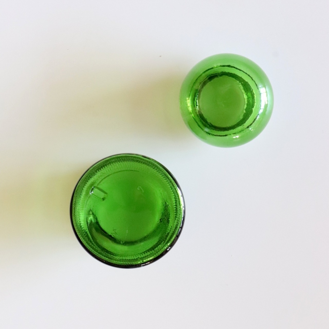 薬瓶は光を透過させないように瓶本体に色(茶色/青色/緑色)を付けられたものが多く、こちらもそうしたイメージで製作されたもののうちの1点です。