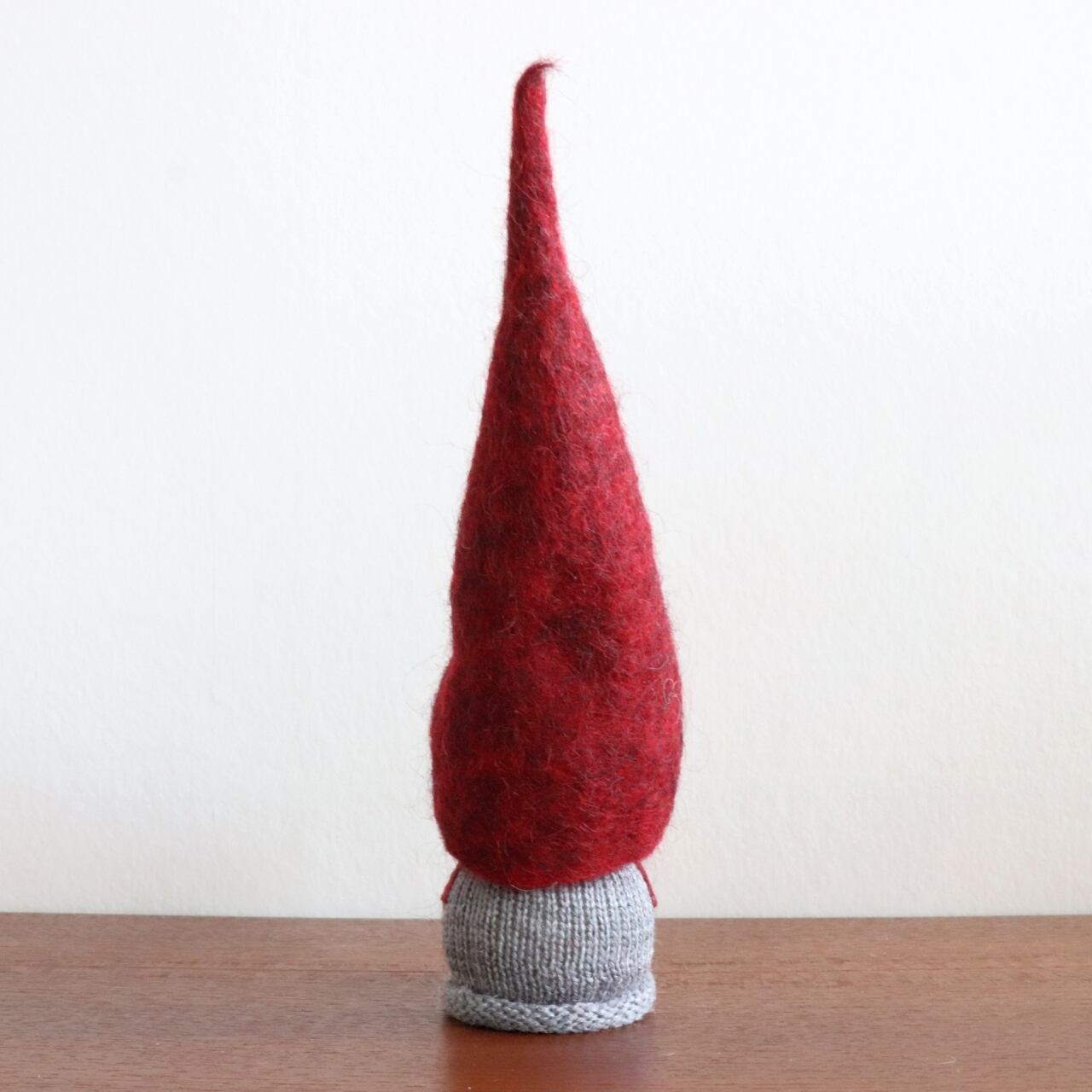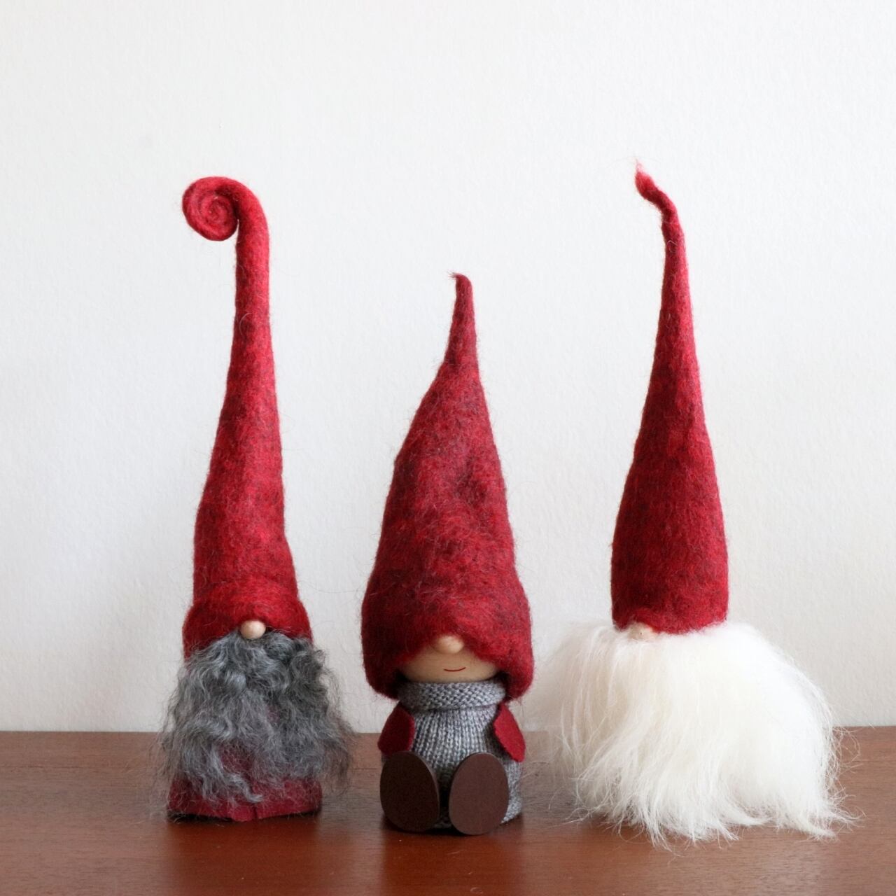 羊(ゴットランドシープ)の毛を筆頭に、アイスランド、オーストラリア、ノルウェーの羊の毛が使用されています。毛刈りから加工まですべてが手作業です。帽子と鼻に使用しているフェルトは、羊毛をこしらえることから始まり、すべて自分たちの手で製作しています。一体一体に違った個性があり、高級感と存在感のあるトムテ人形です。