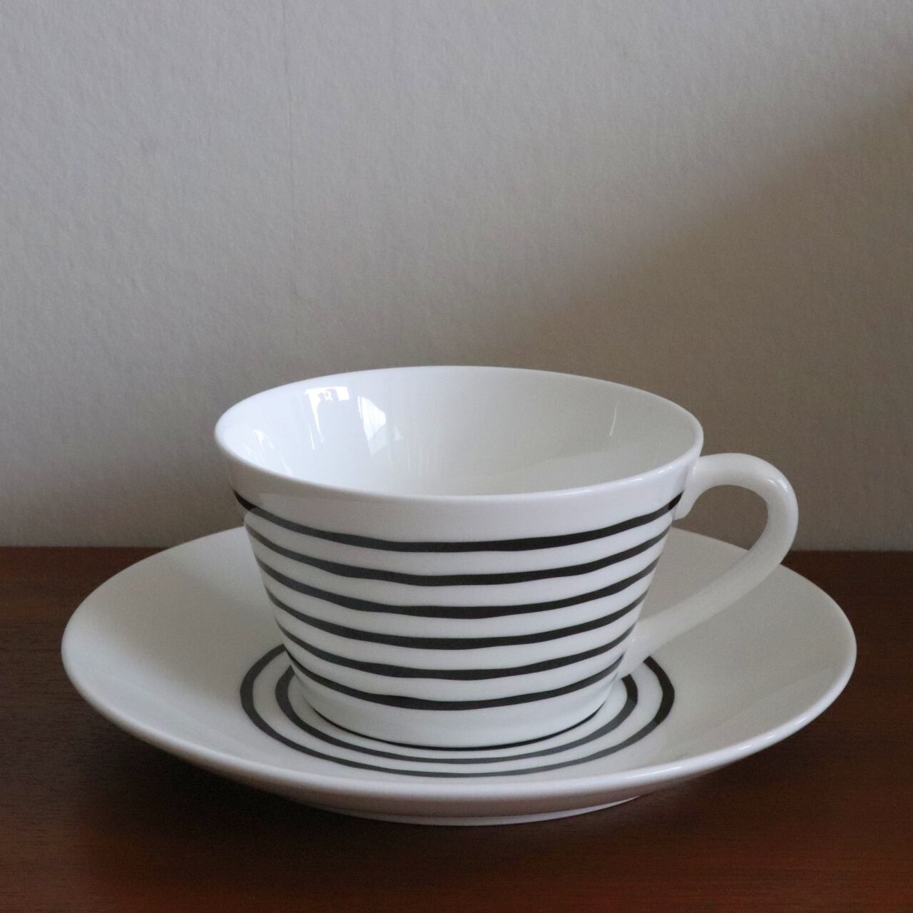 グスタフスベリが誇るクラシックな白い磁器に揺らぎの有るストライプ模様。シリーズはティーカップ/プレート18㎝(2種類)/プレート/ボウル/蓋付きのジャーというフォルムで製作されています。
