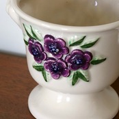 1960-70年代頃、Rosa LjungがデザインしたスウェーデンDeco社のフラワーベース。白地のボディに花をあしらったデザインで、Rosaが得意とするモチーフの一つです。