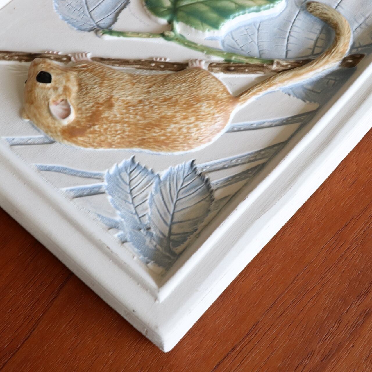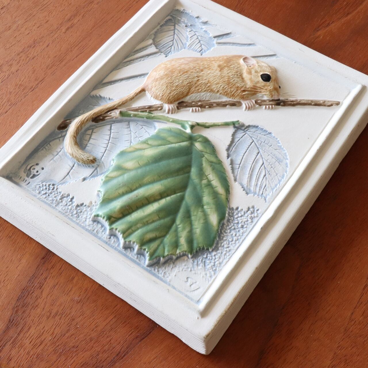 同社の創業者の息子であり、また鳥類学者でもあったStaffan Johnsonによる作品となります。売り上げの一部をWWF(世界自然保護基金)に寄付するために製作されたシリーズの一つで、ヨーロッパヤマネをモチーフに製作されています。背面には通し穴と針金が付いていますので、そのまま壁に飾ることも可能です。