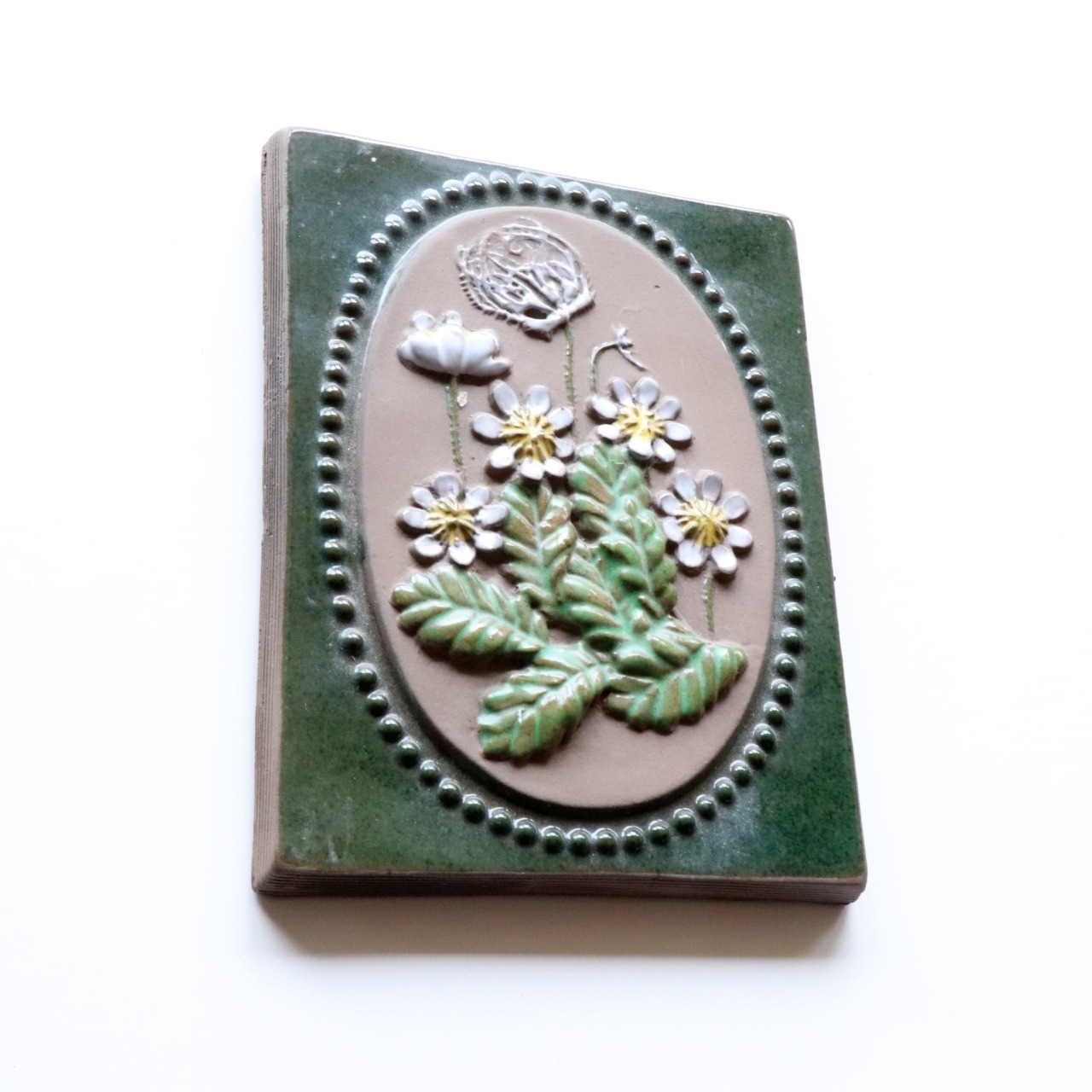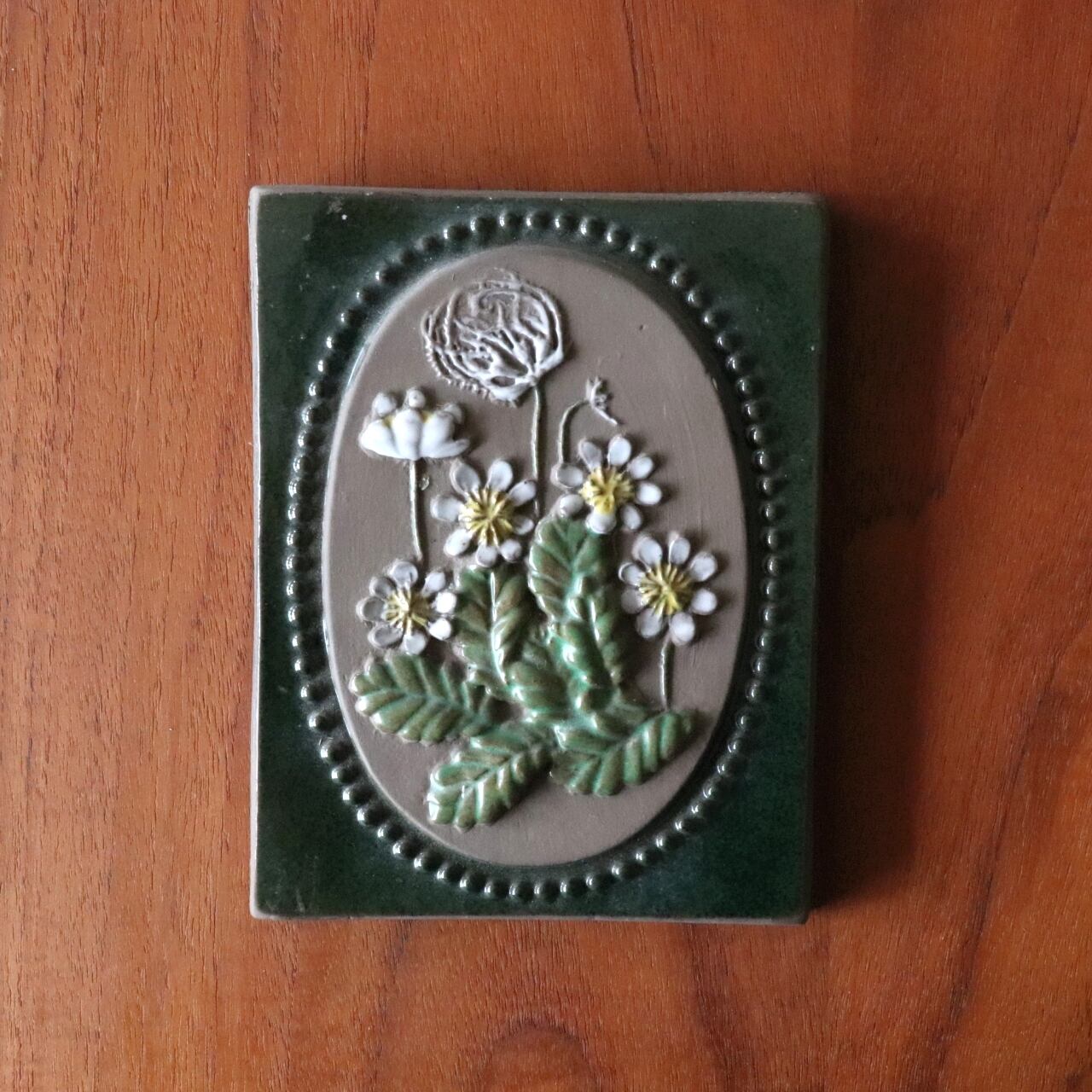 【c6058】Fjallsippa(チョウノスケソウ)の陶板(17㎝) [Jie gantofta / Sweden]