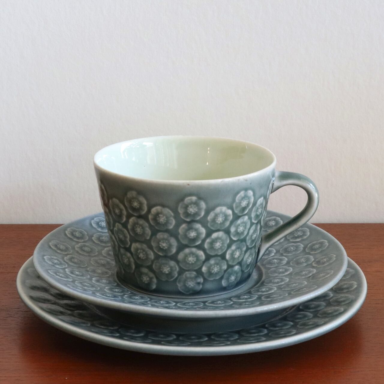 イエンス・クイストゴーデザインによるBlue Azur。 1957年にKronjydenから製作が始まり、その後Nissen・B&Gと製造が続いた人気のシリーズです。 エンボスで表現された杏の花の可愛らしいモチーフでありながら 落ち着いた色合いが甘すぎない柔らかさでとても良い雰囲気です。